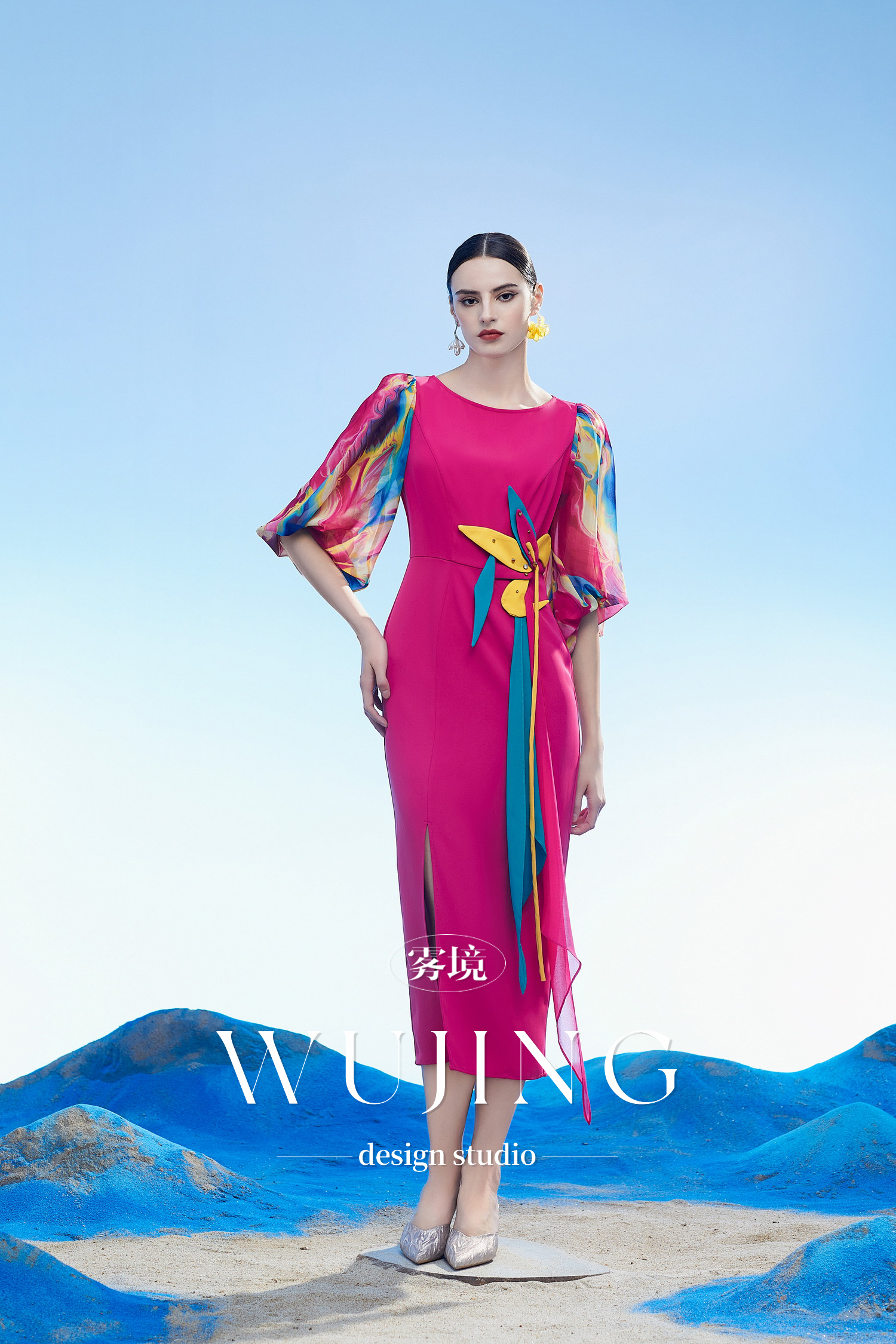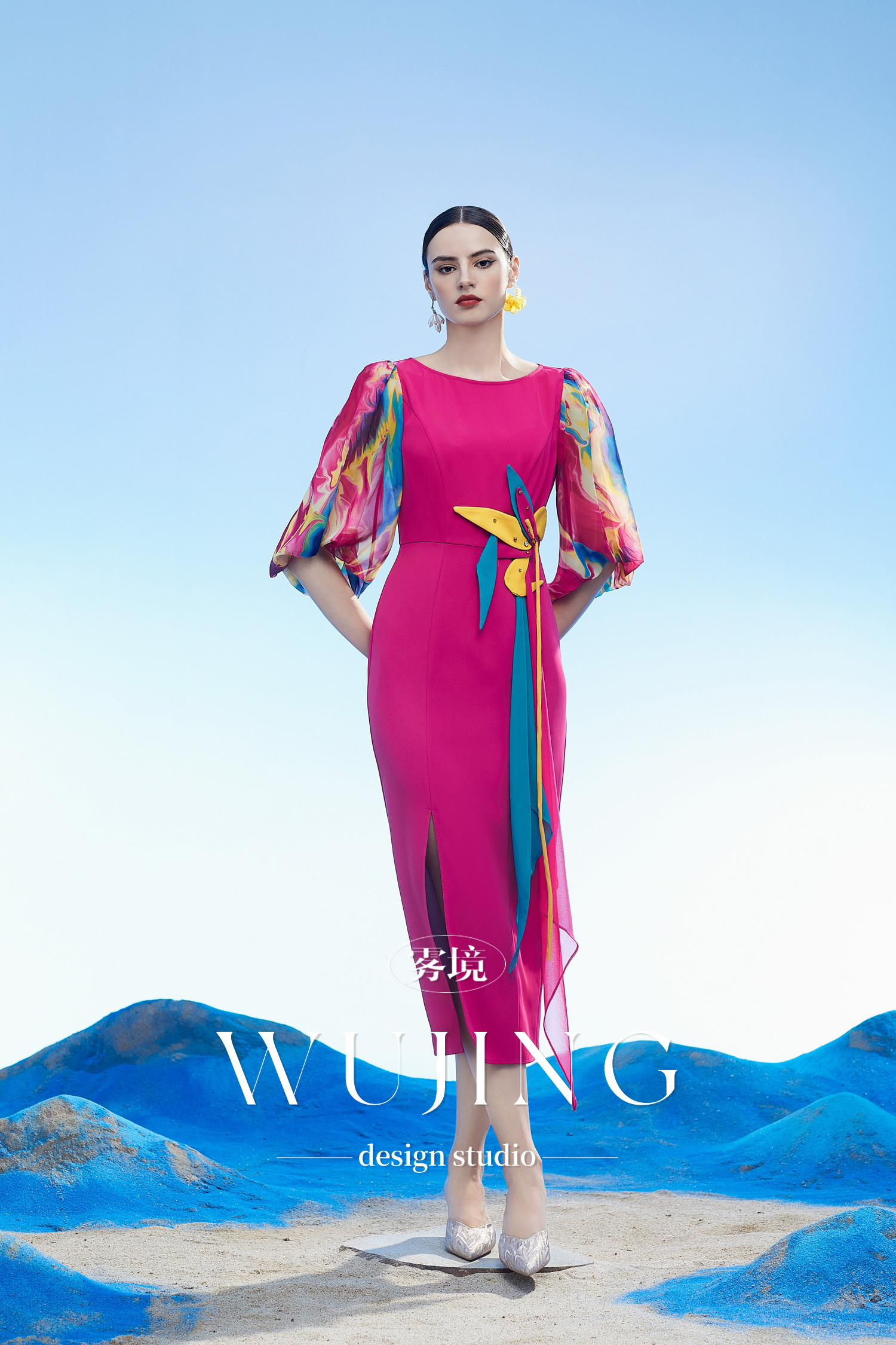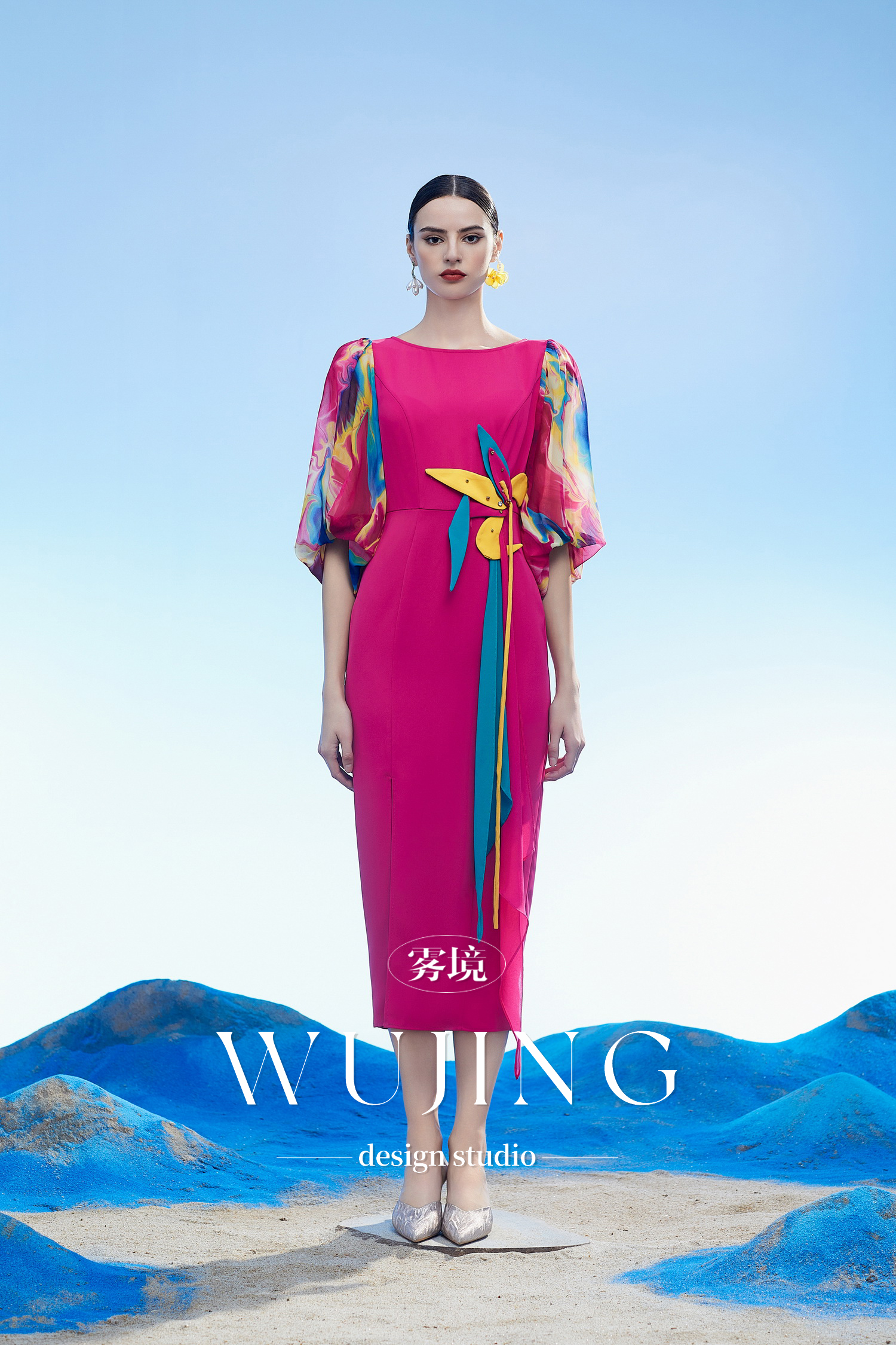 3204093 丹霞染绫 韩国进口水晶乔其纱进口斜纹织锦缎连衣裙 雾境