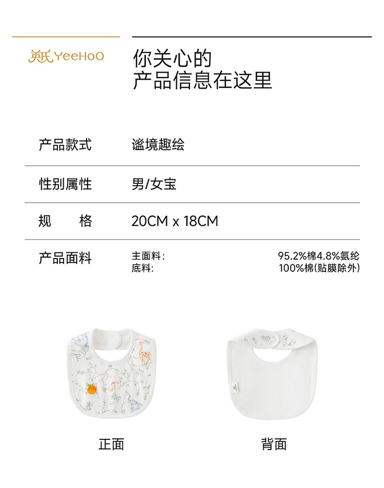 英氏婴儿口水巾新生儿亲肤小方巾宝宝围嘴围兜YLSBJ0S001A