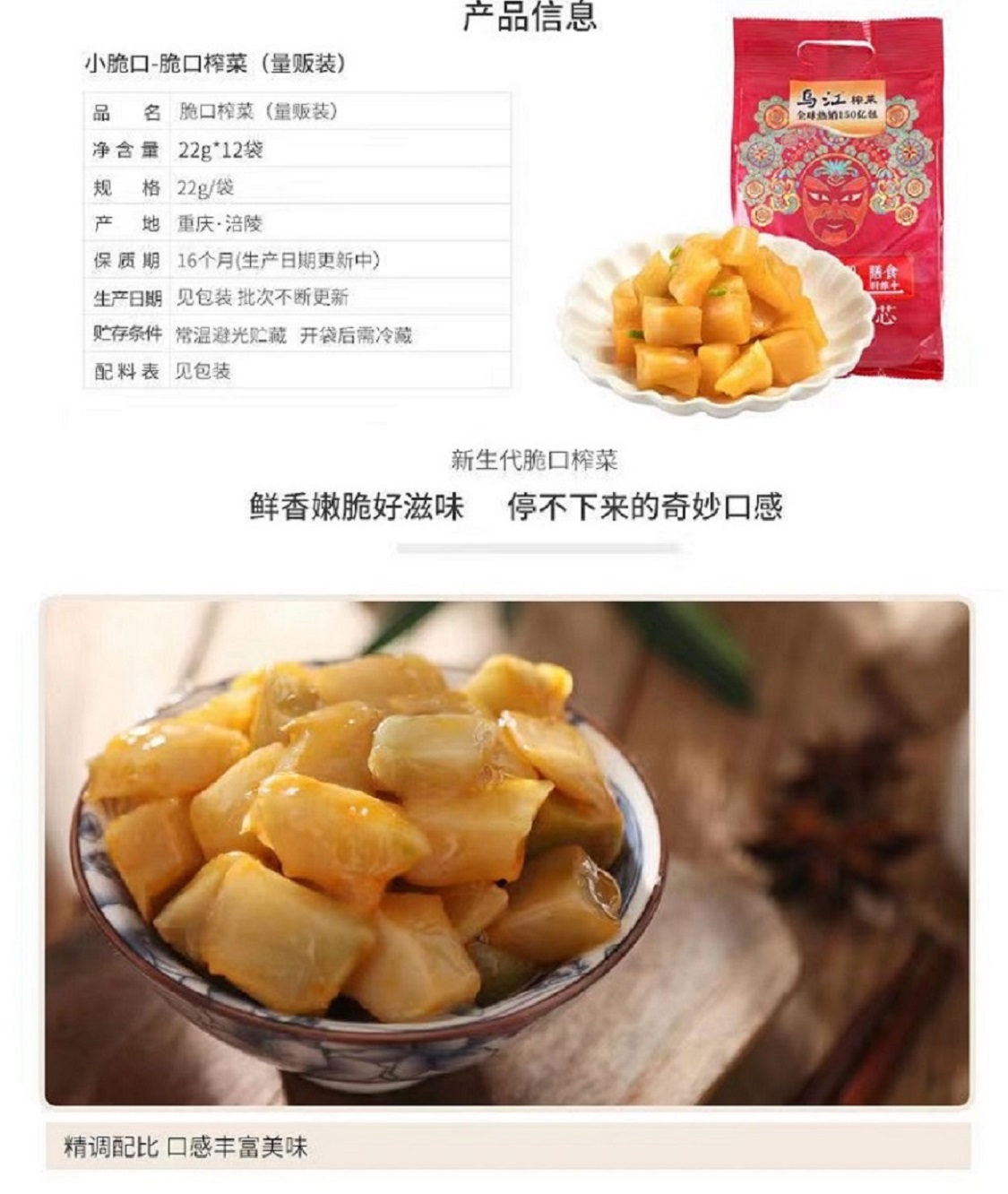 乌江榨菜脆口榨菜芯*2袋(22g*12小包/袋)生产日期:11月