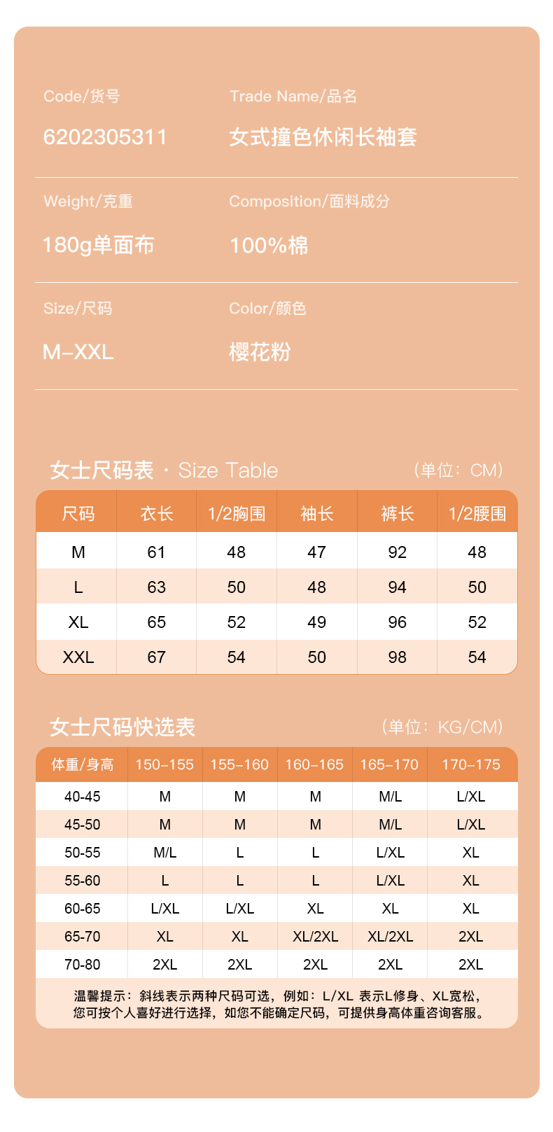 I'd爱帝女士针织纯棉休闲圆领长袖家居服