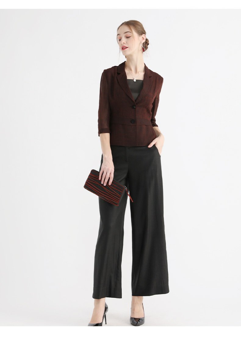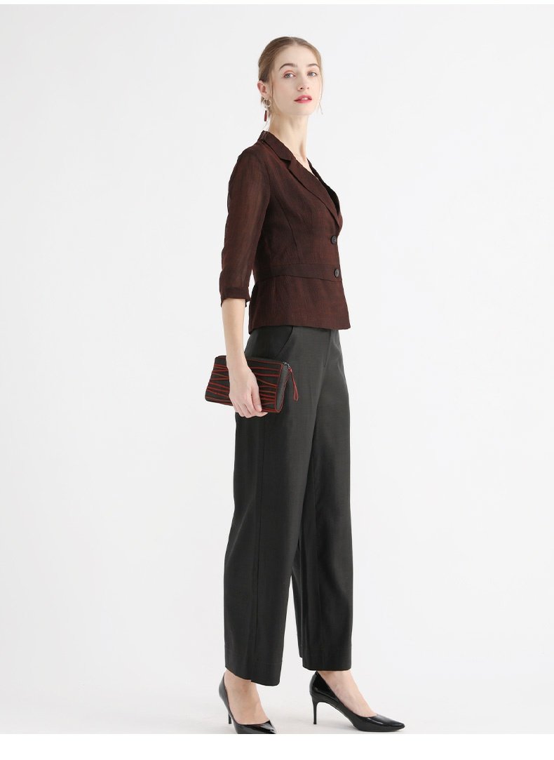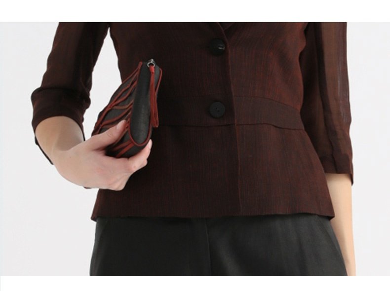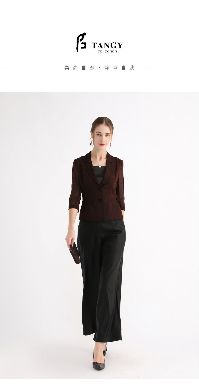 TANGY Collection/天意精品春秋新品莨迹系列莨绸拼纱西装小外套