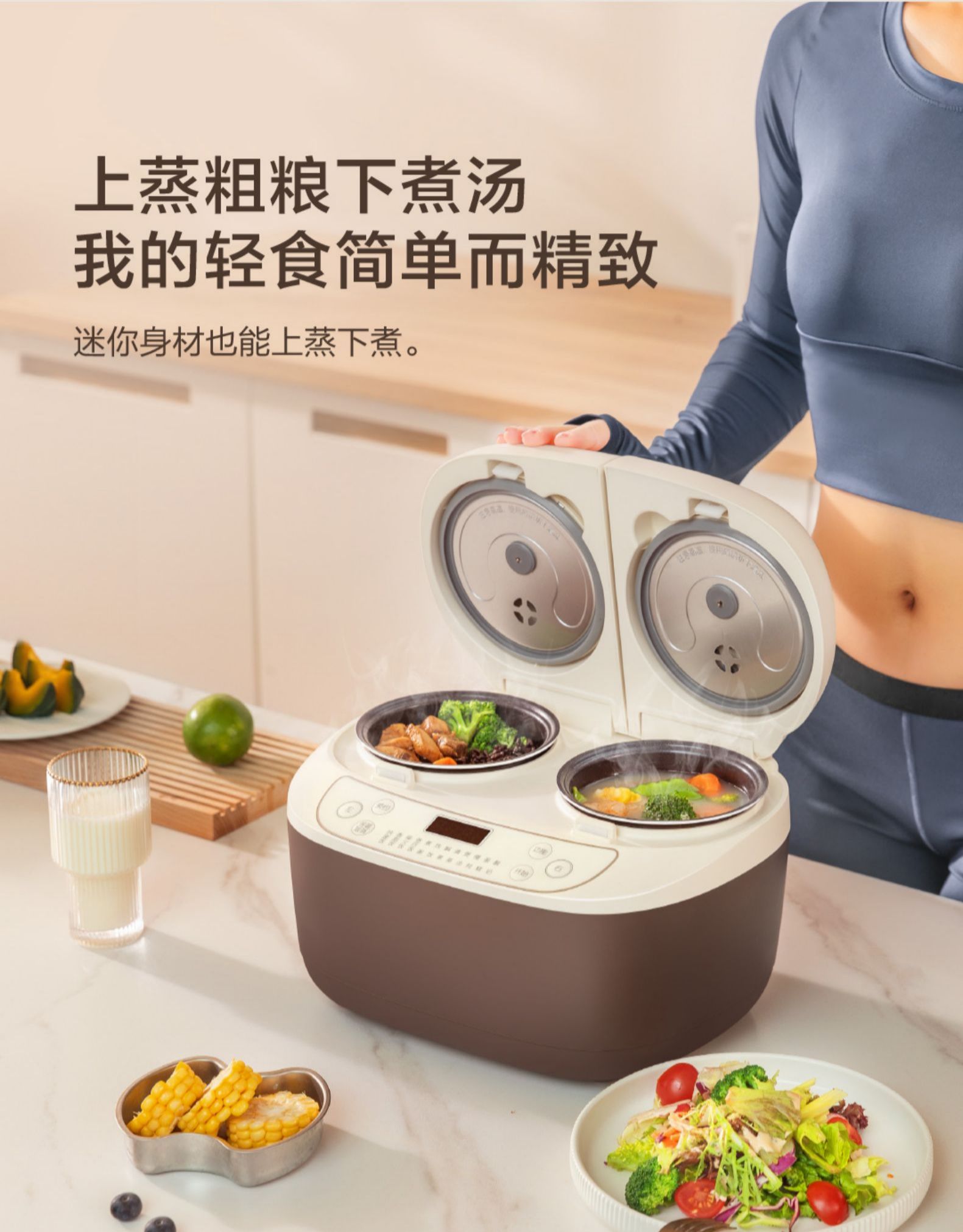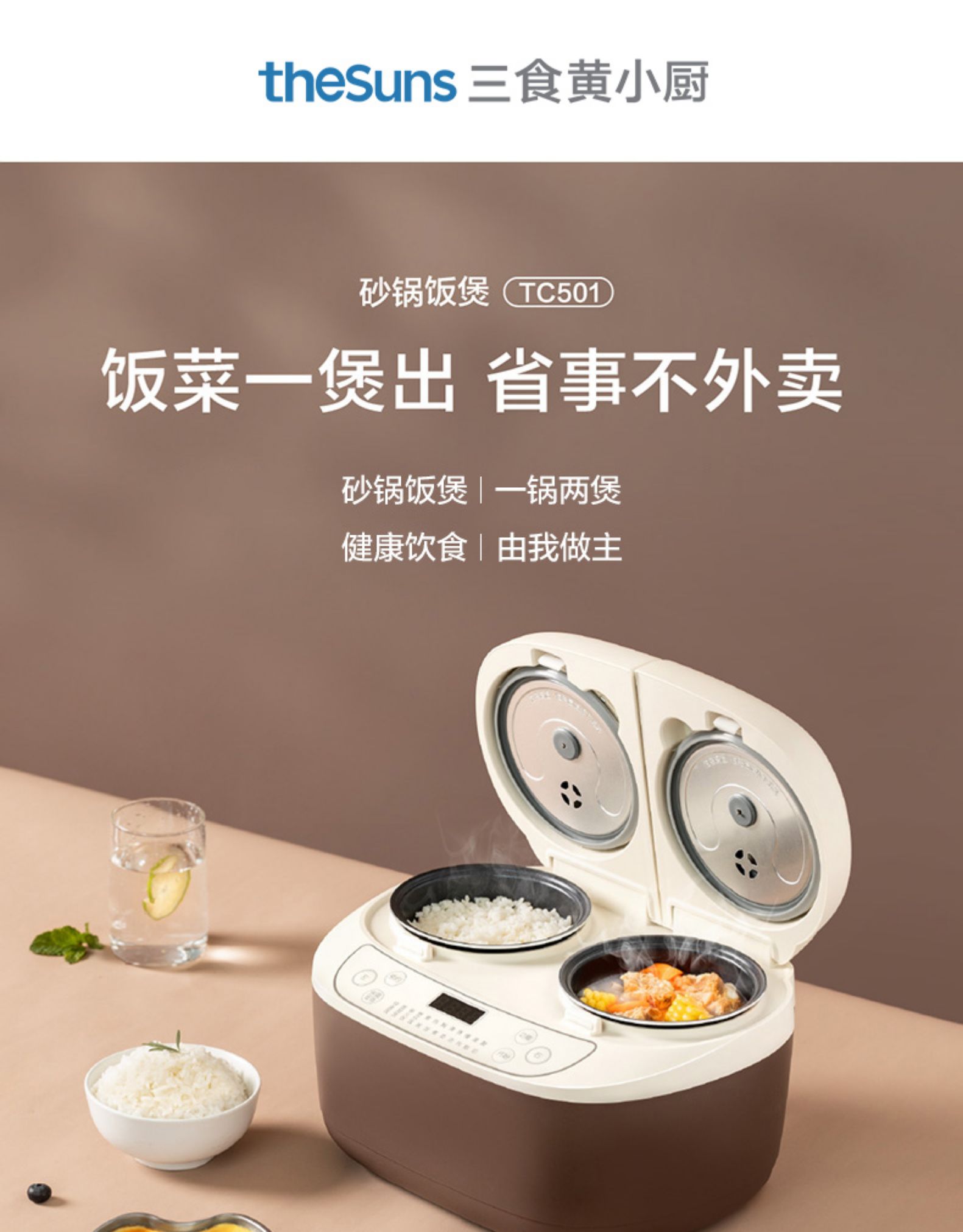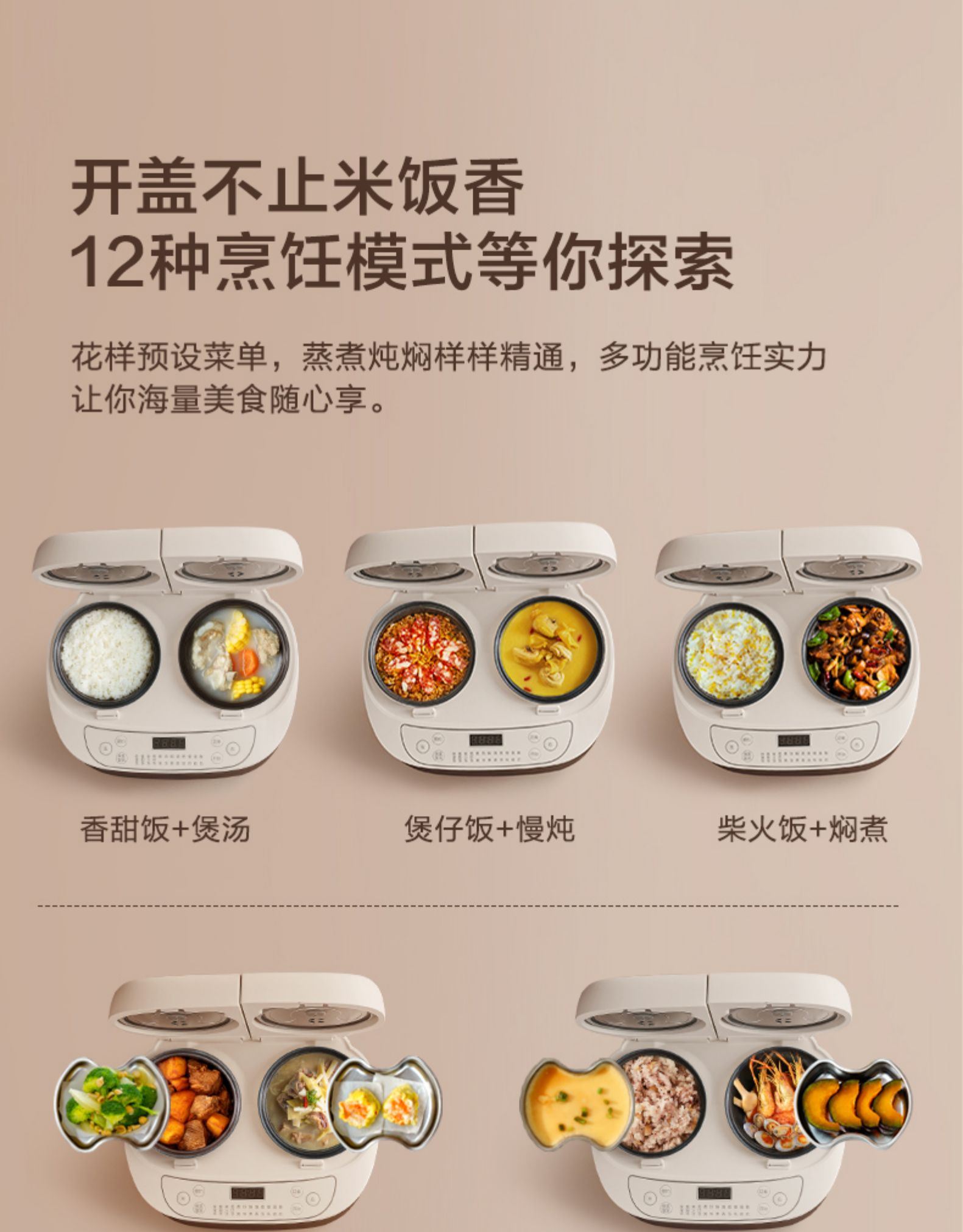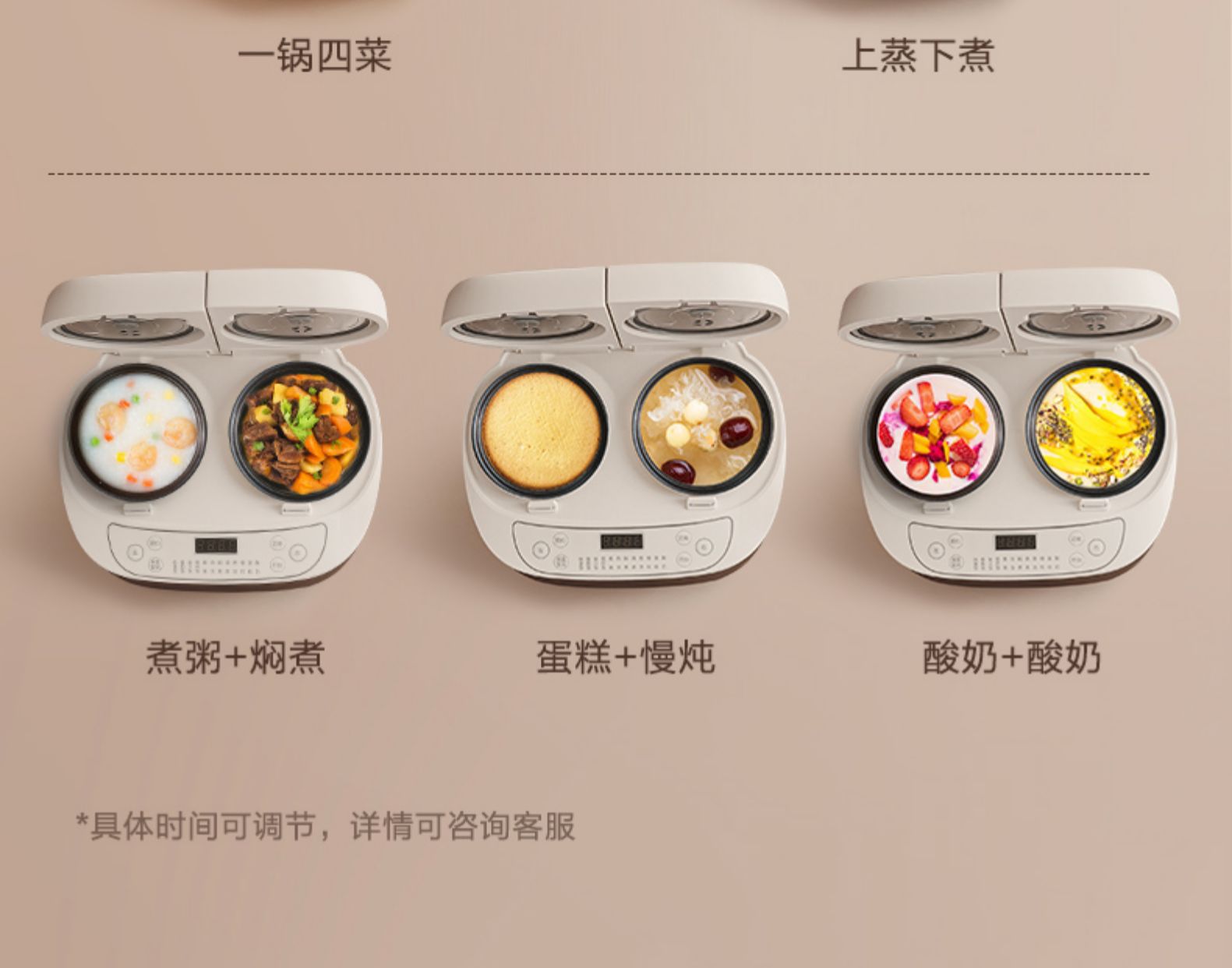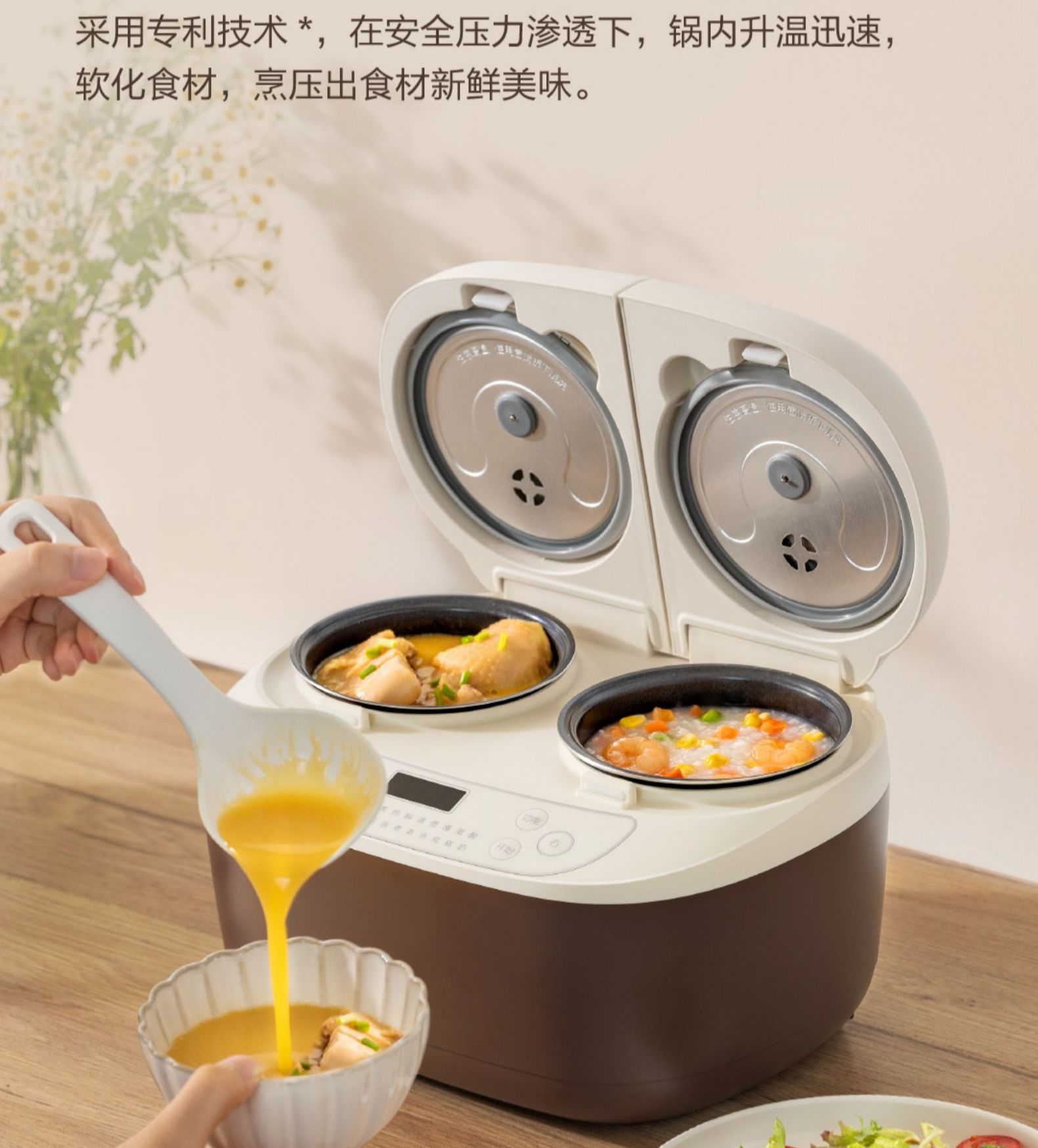 三食黄小厨砂锅饭煲双胆双体智能电饭煲家用蒸煮粥汤小型多功能锅