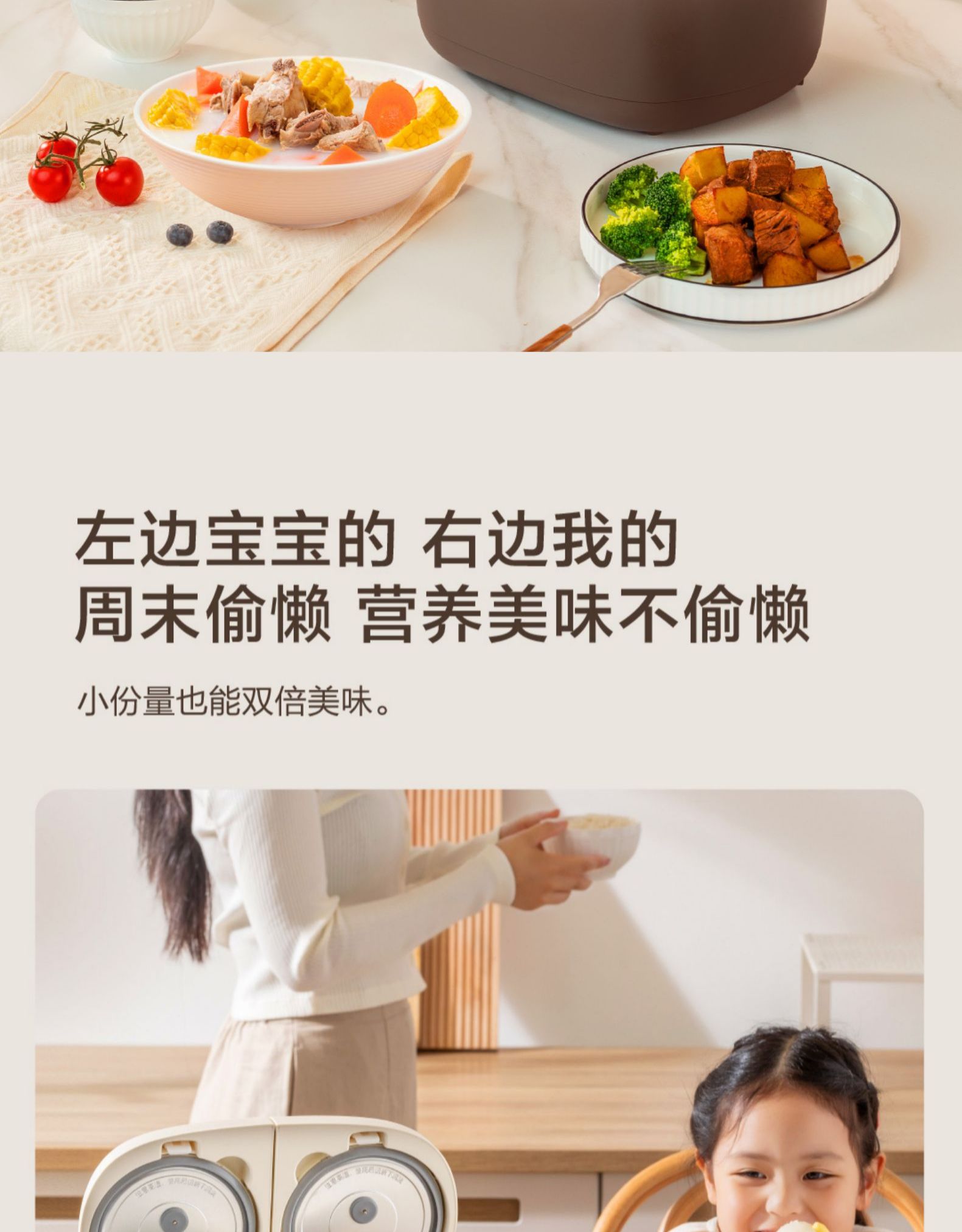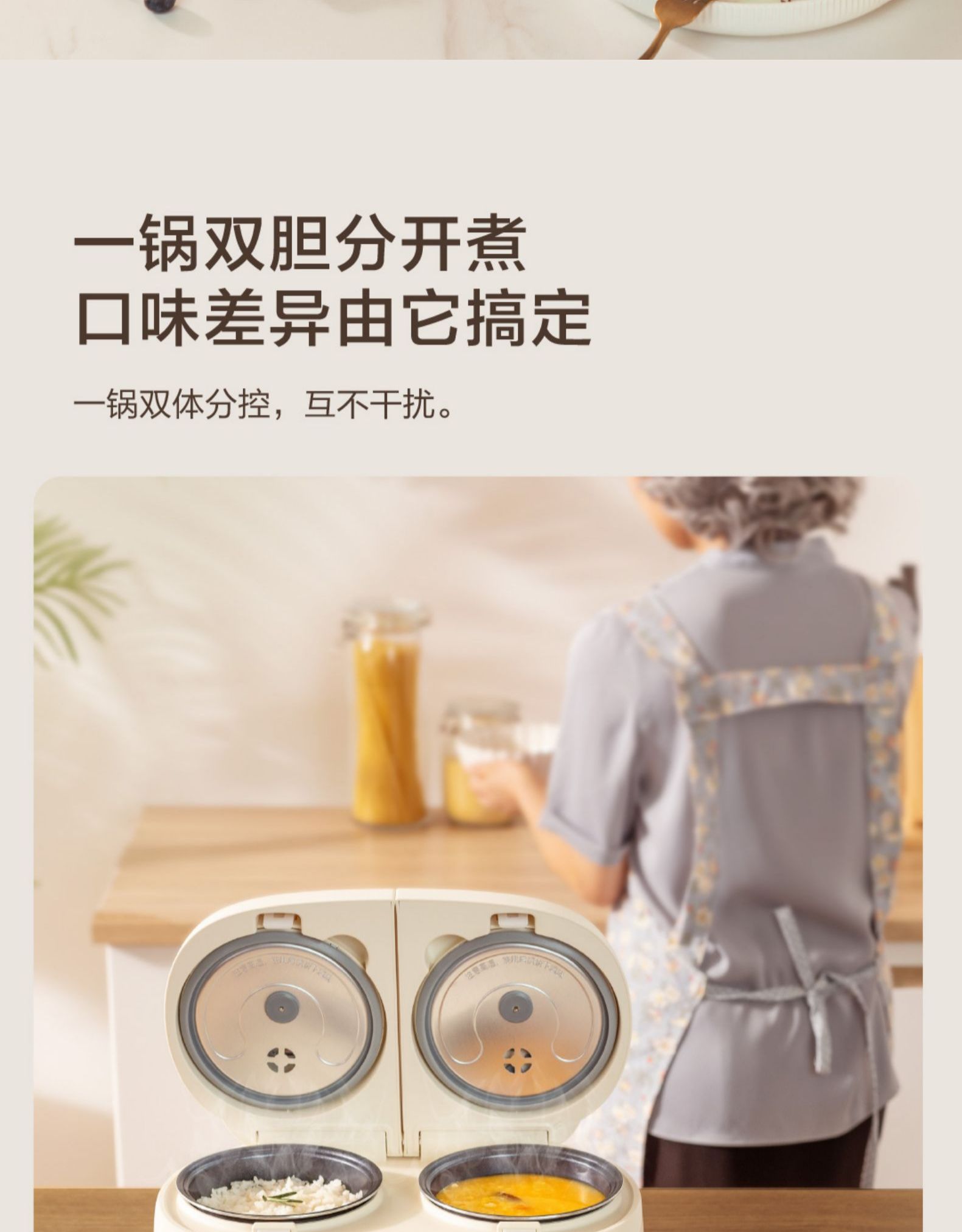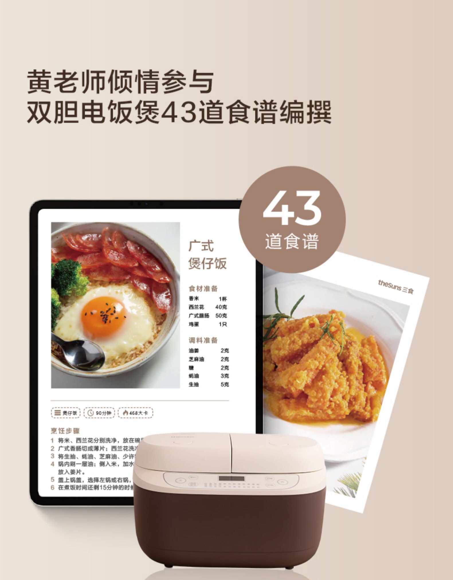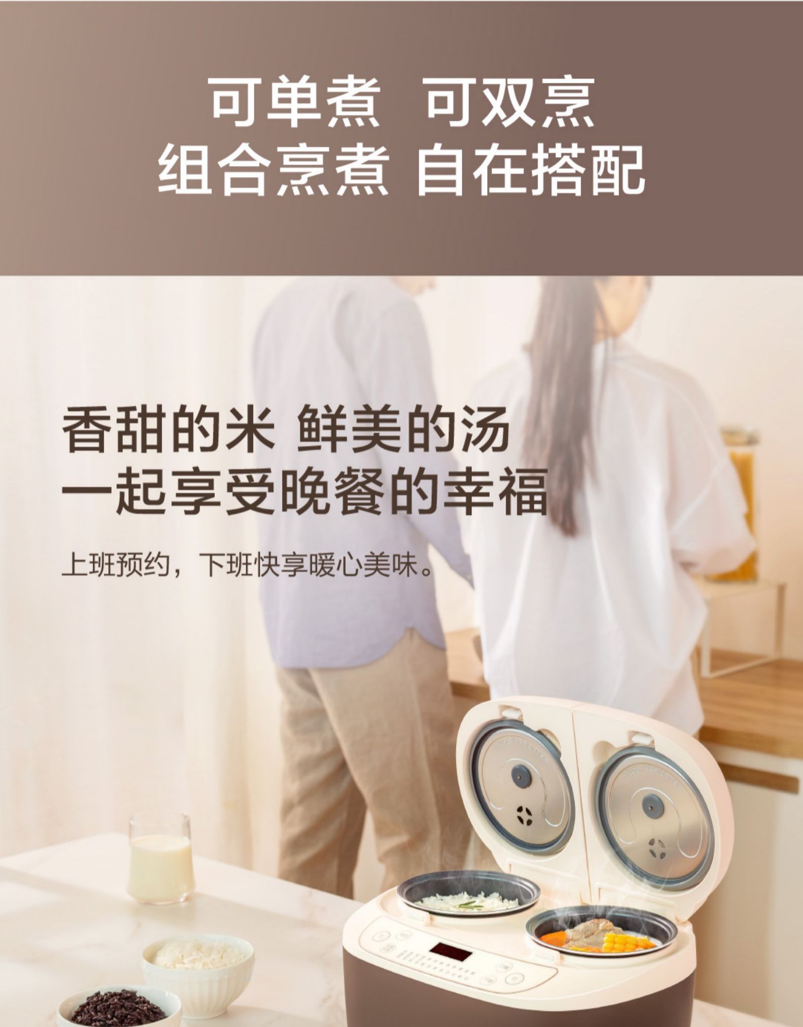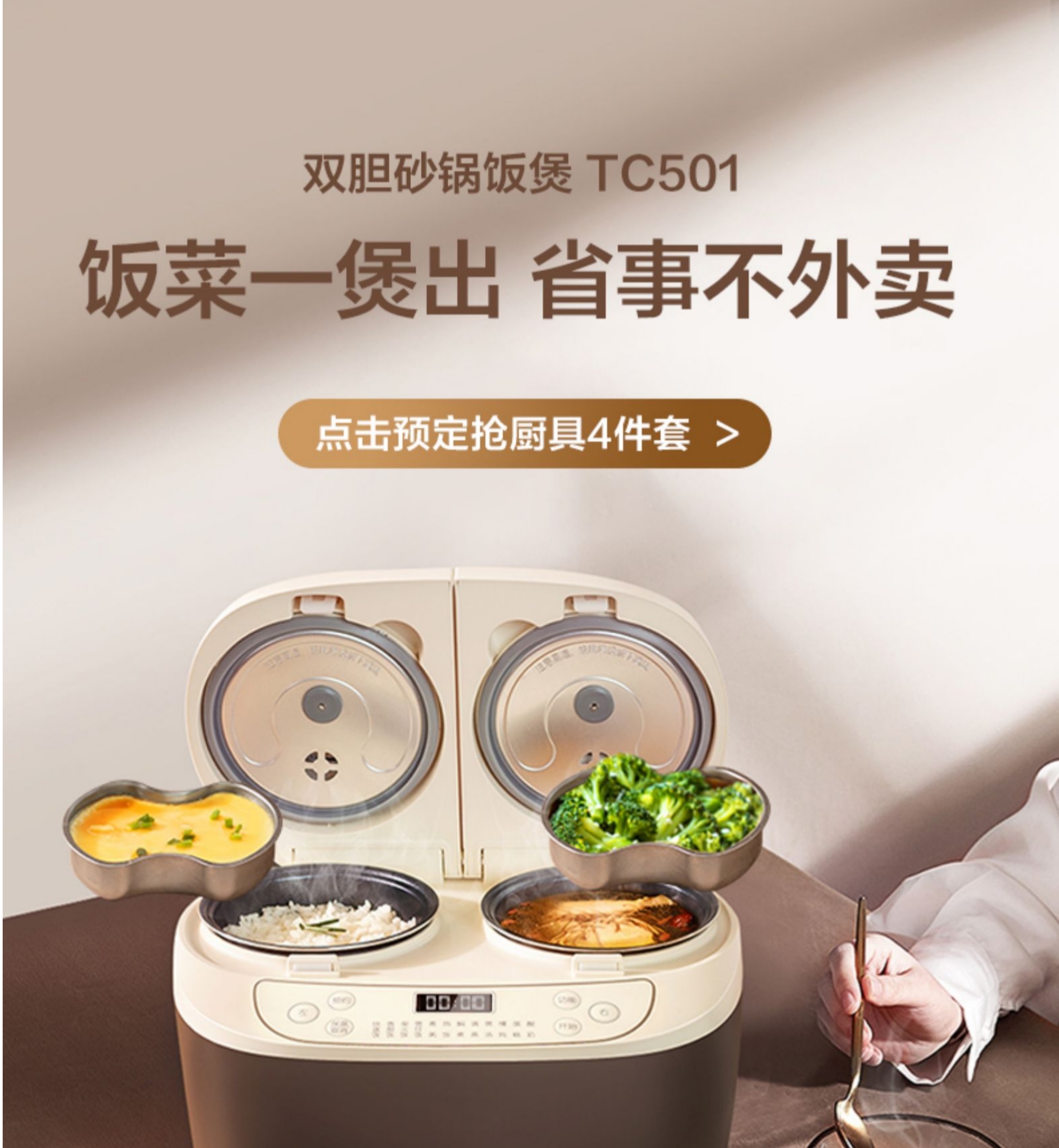 三食黄小厨砂锅饭煲双胆双体智能电饭煲家用蒸煮粥汤小型多功能锅