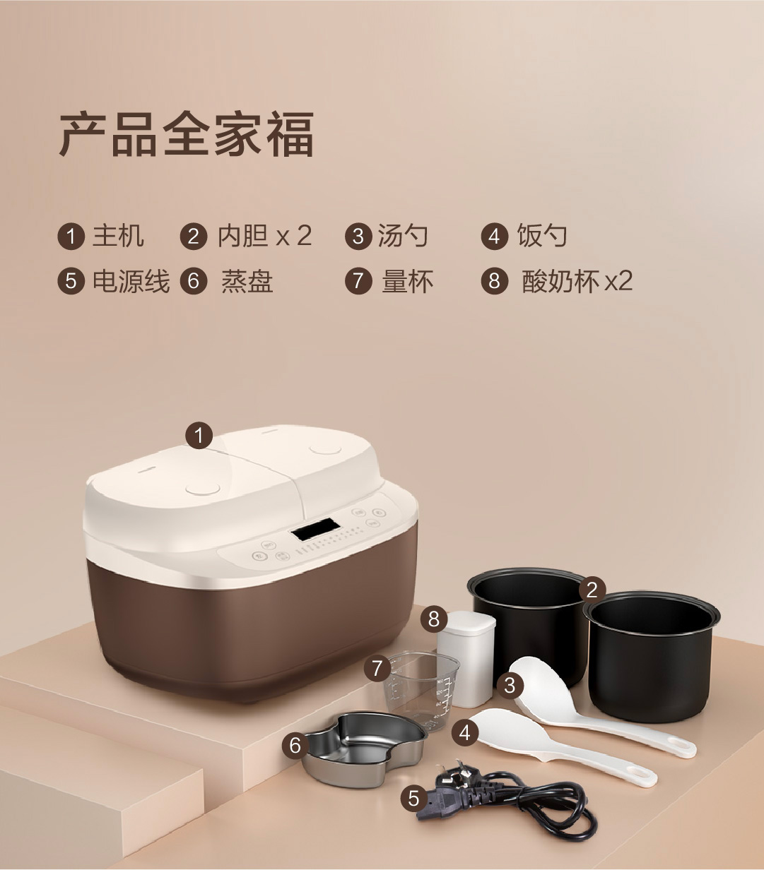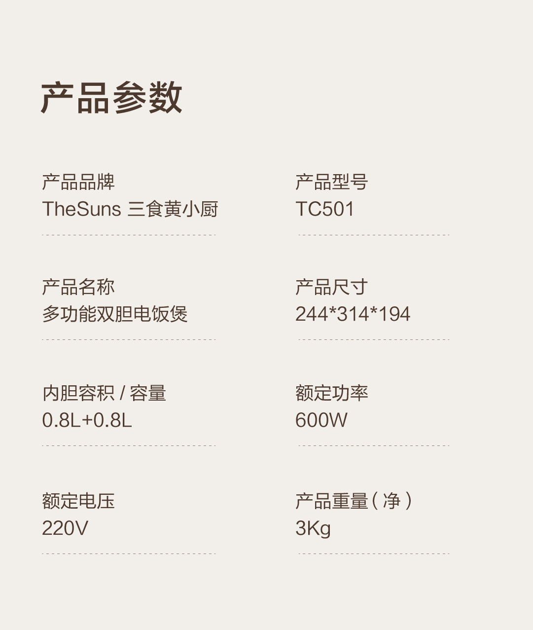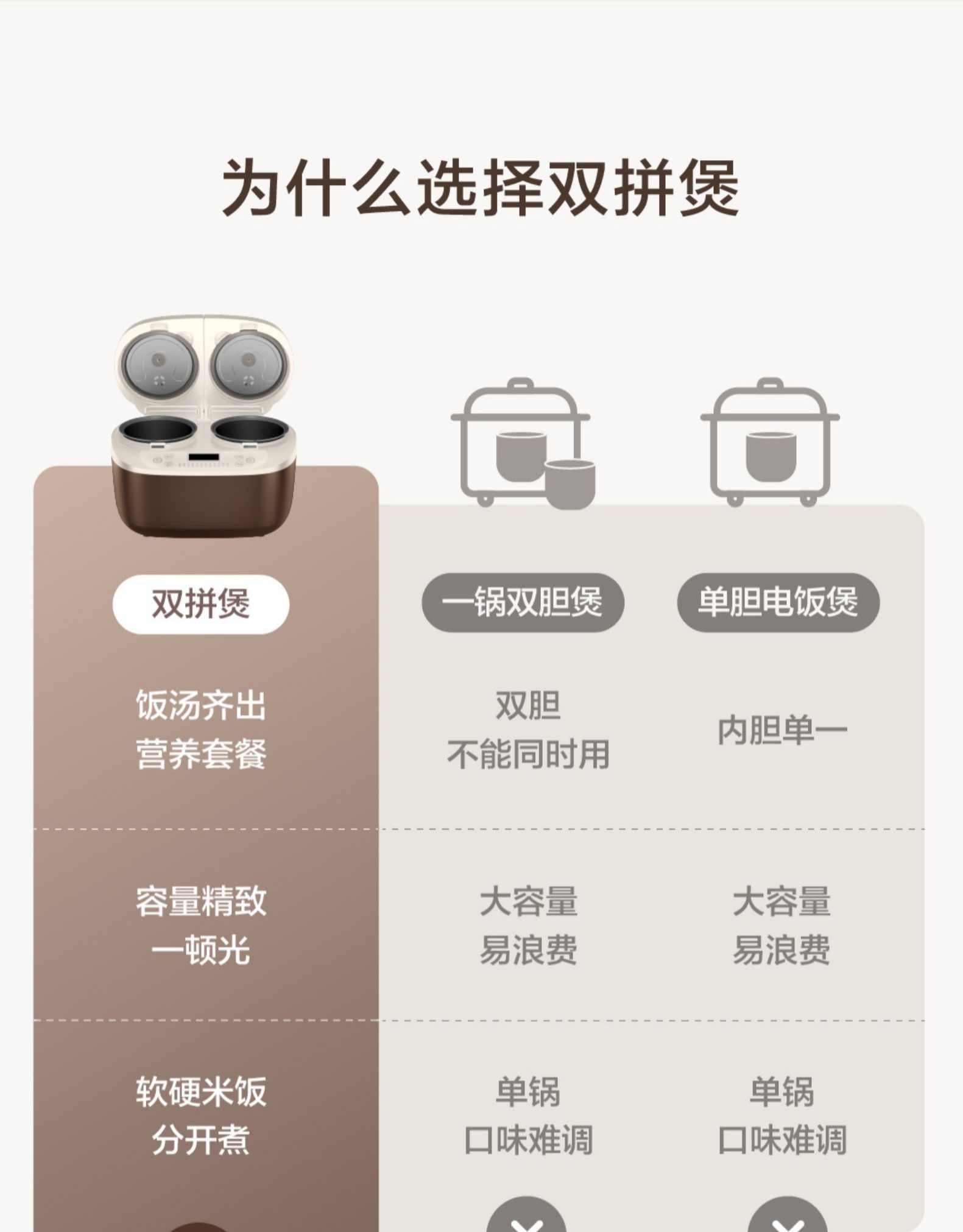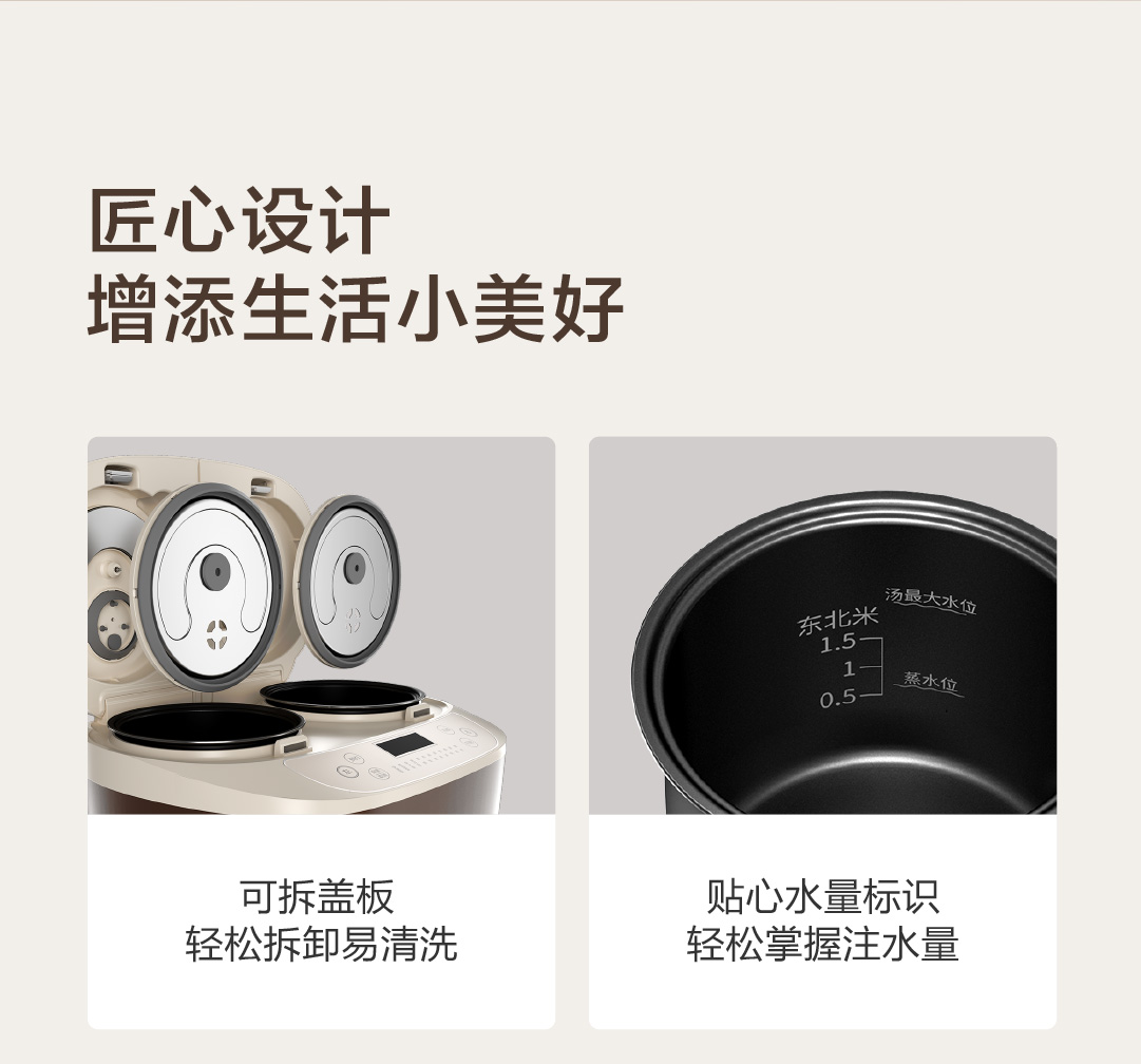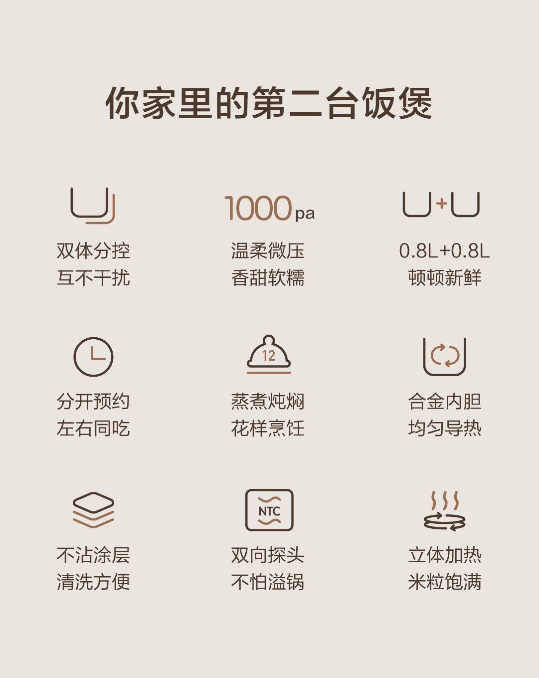 三食黄小厨砂锅饭煲双胆双体智能电饭煲家用蒸煮粥汤小型多功能锅