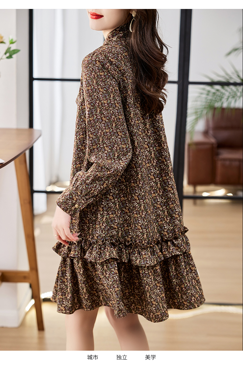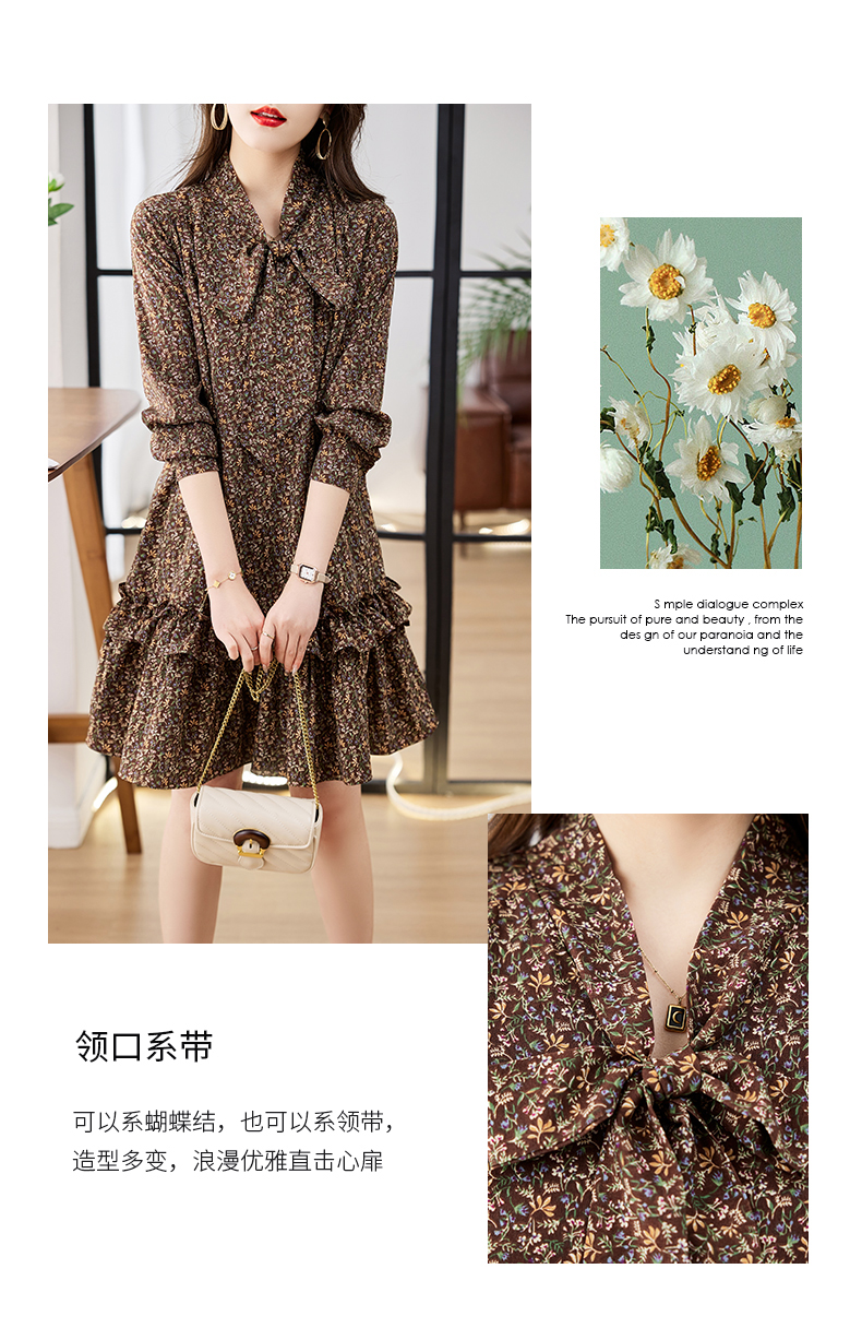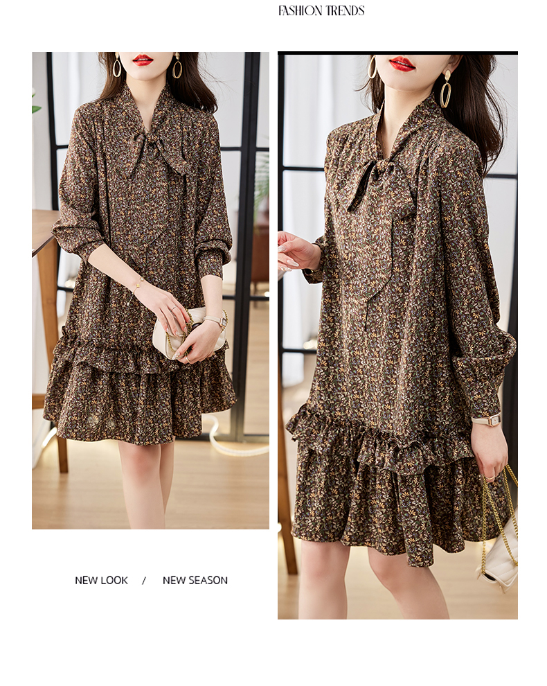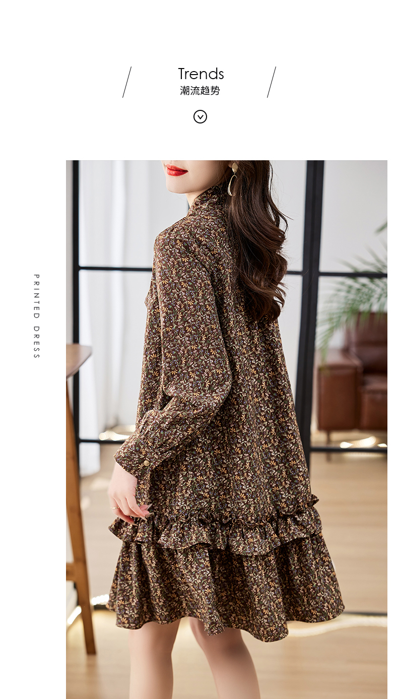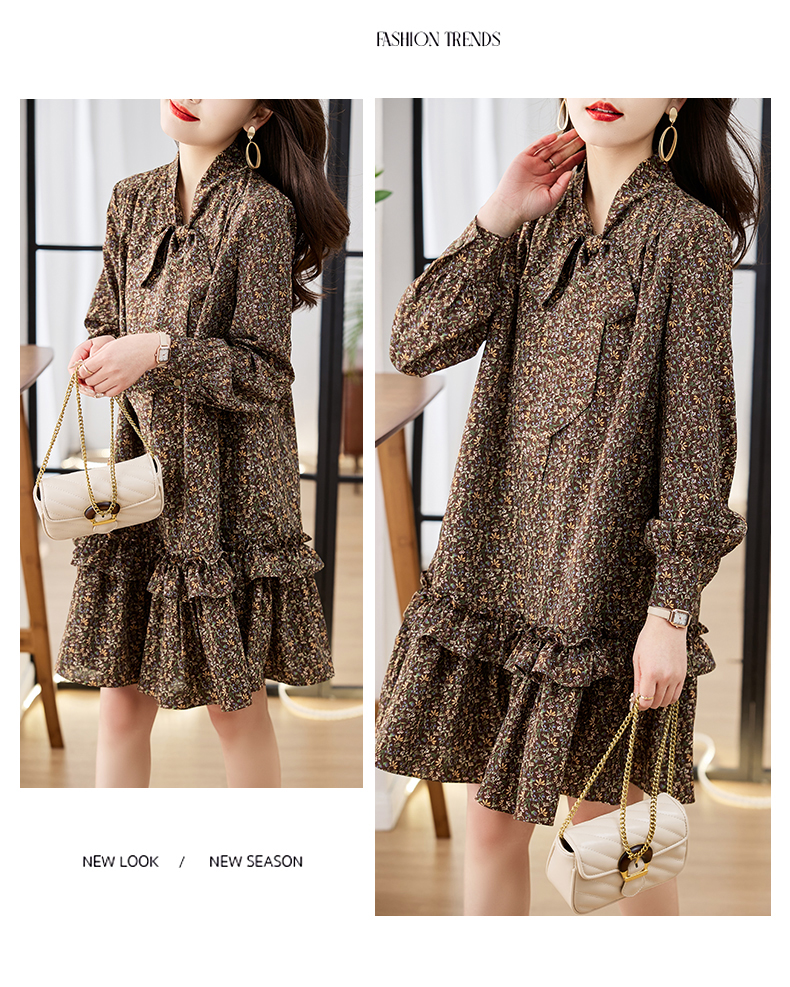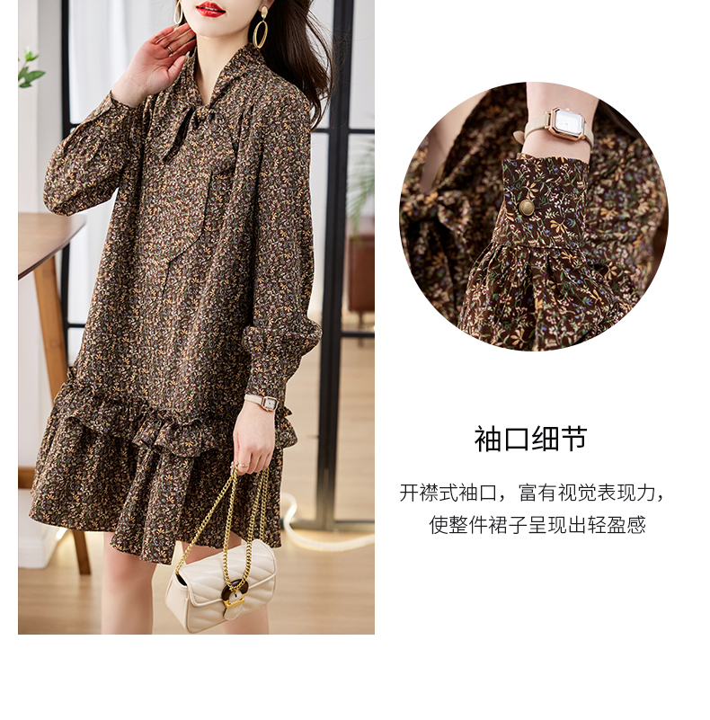 春夏新款,复古碎花长袖连衣裙HR-ZYF2317-1