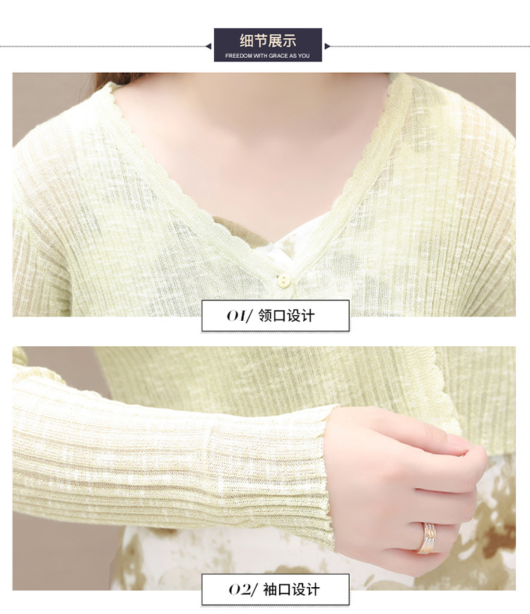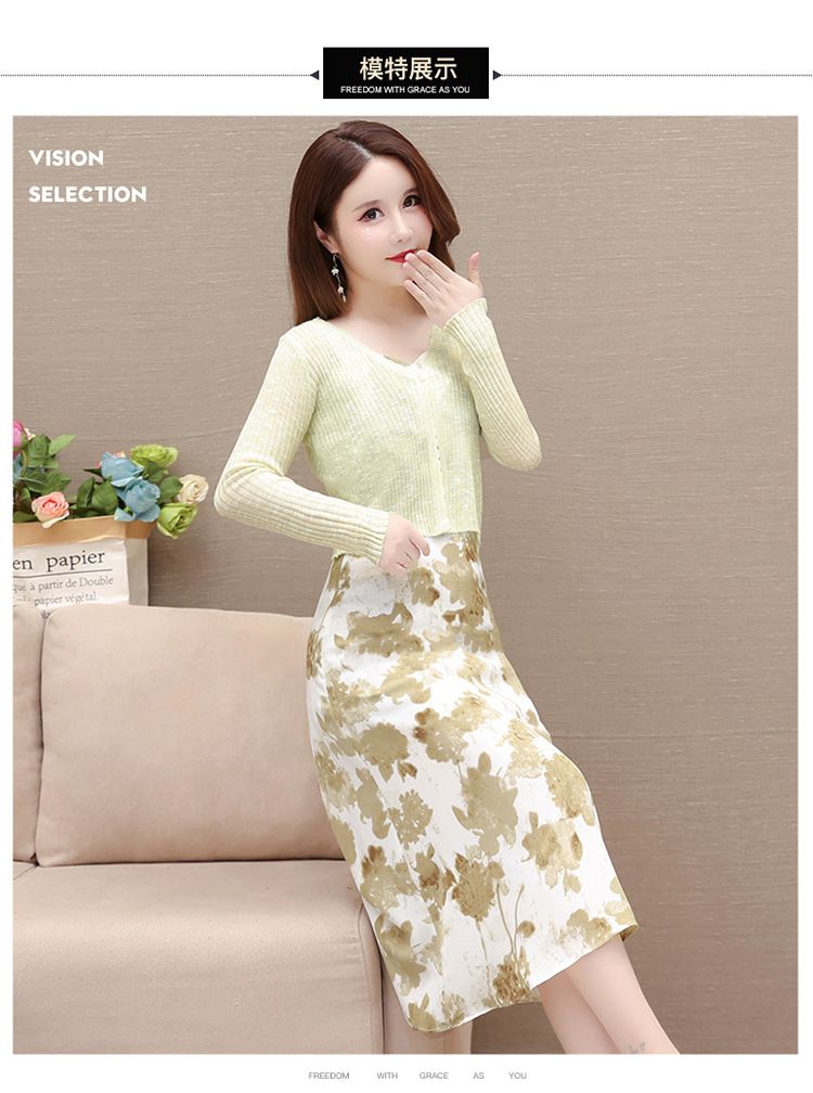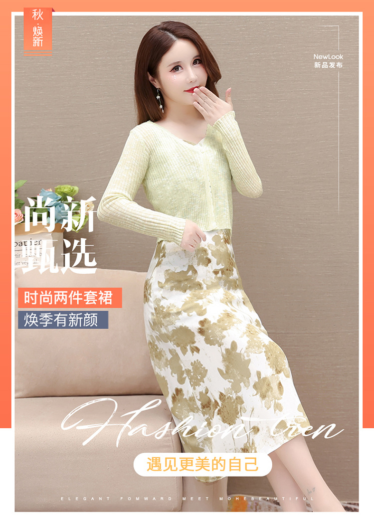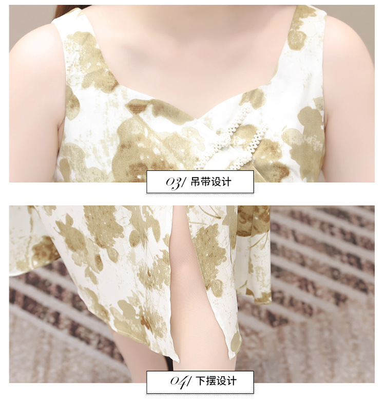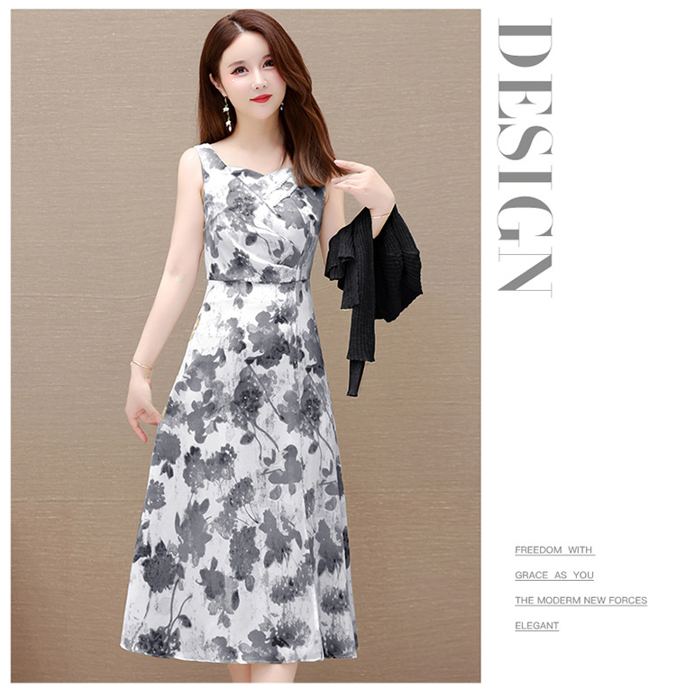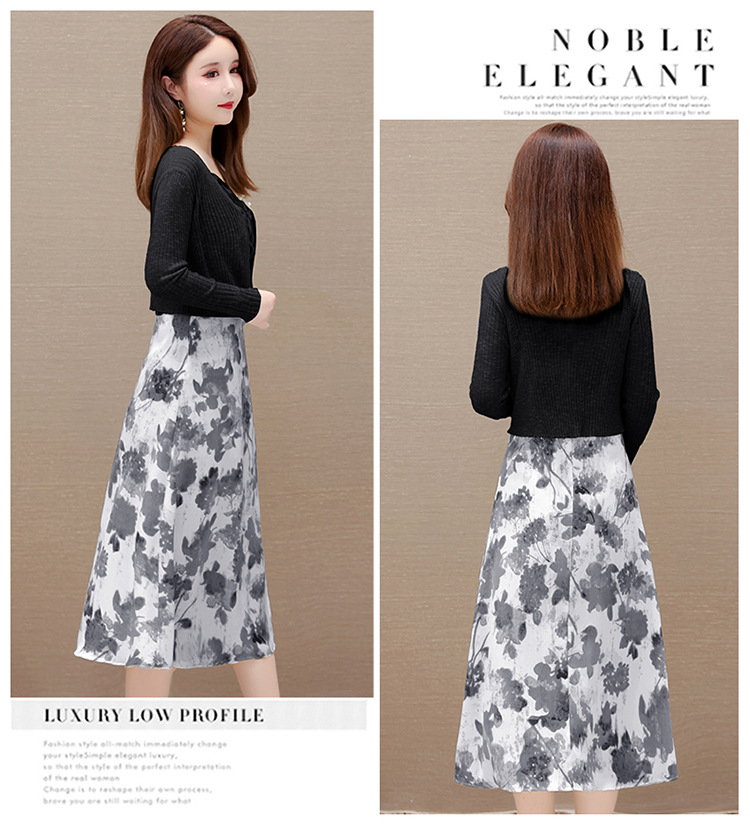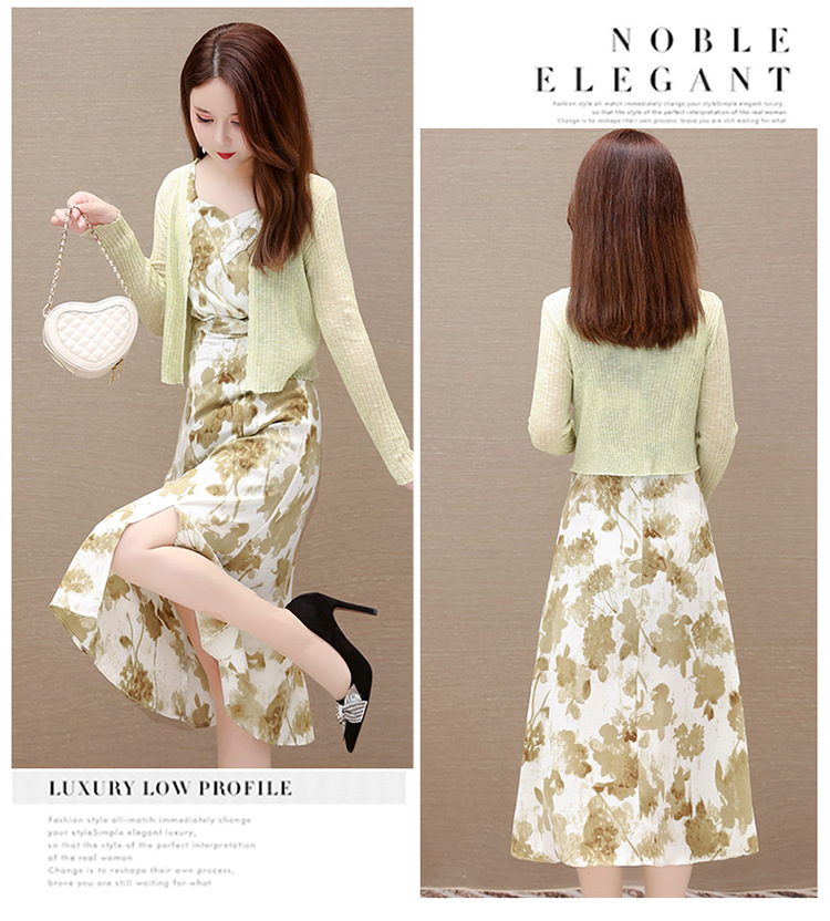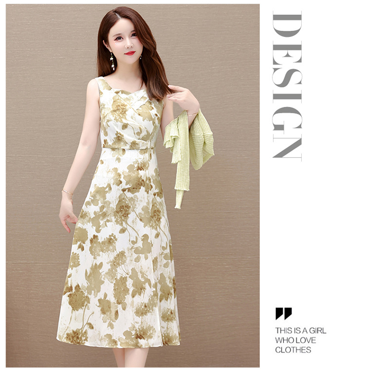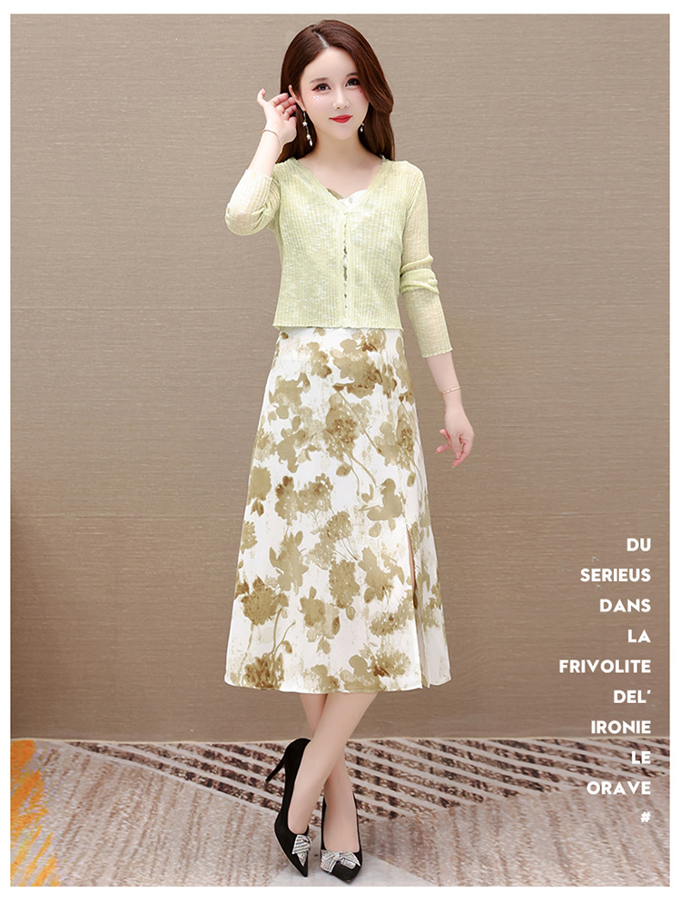 简约时尚,秋款印花中长款雪纺连衣裙长袖轻薄外套两件套QYM-FL-F23B07-L