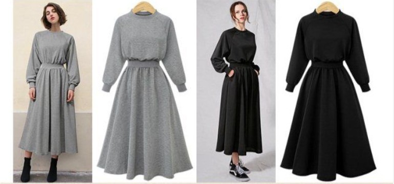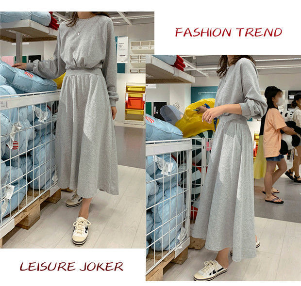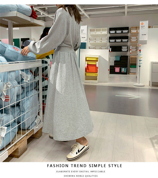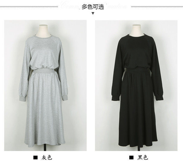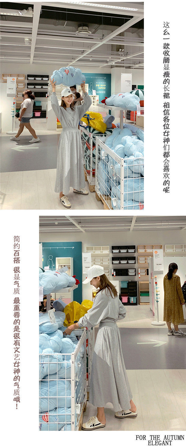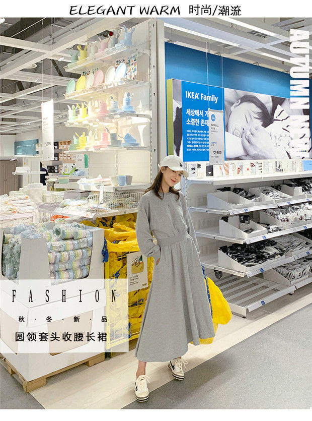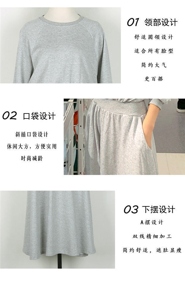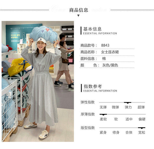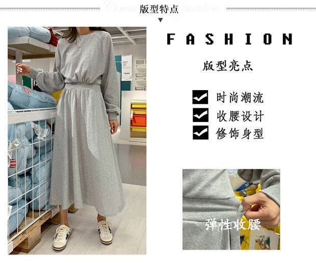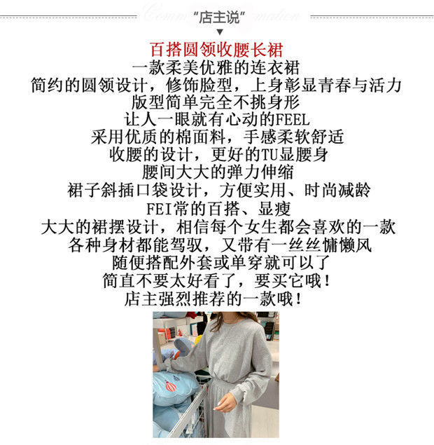 【秋冬时尚卫衣连衣裙】新款韩版气质长袖显瘦大摆收腰长款连衣裙女装潮