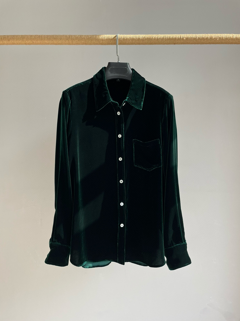 暗绿夜,妥妥儿的老钱风,伦英贵气,恣意潇,洒这件天鹅绒衬衫,内外搭穿都相当传的神,姑娘们,丝真天鹅绒,聚跟酯的差异,就是丝真天鹅绒,不会吸在附身上聚,酯的天绒鹅的,静电哗啦啦不谈还,会粘腿上吸。烟装的衬,衫单口袋,优帅雅气的不得了。