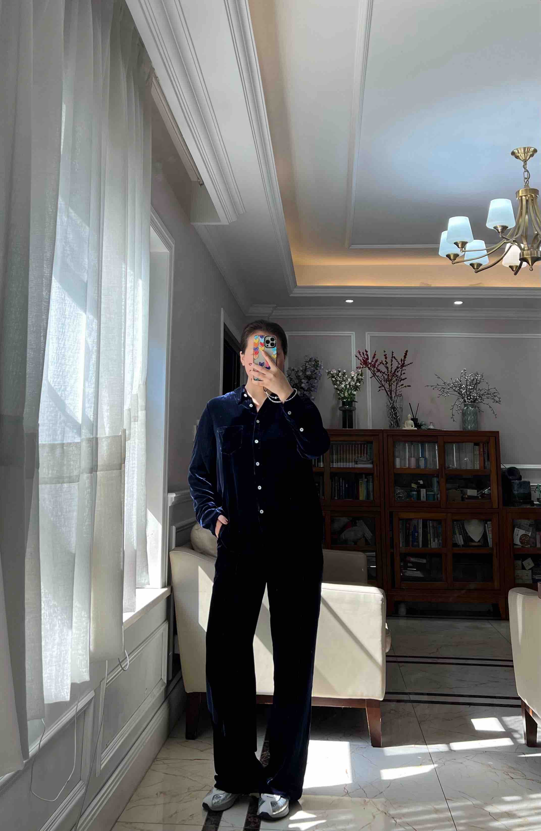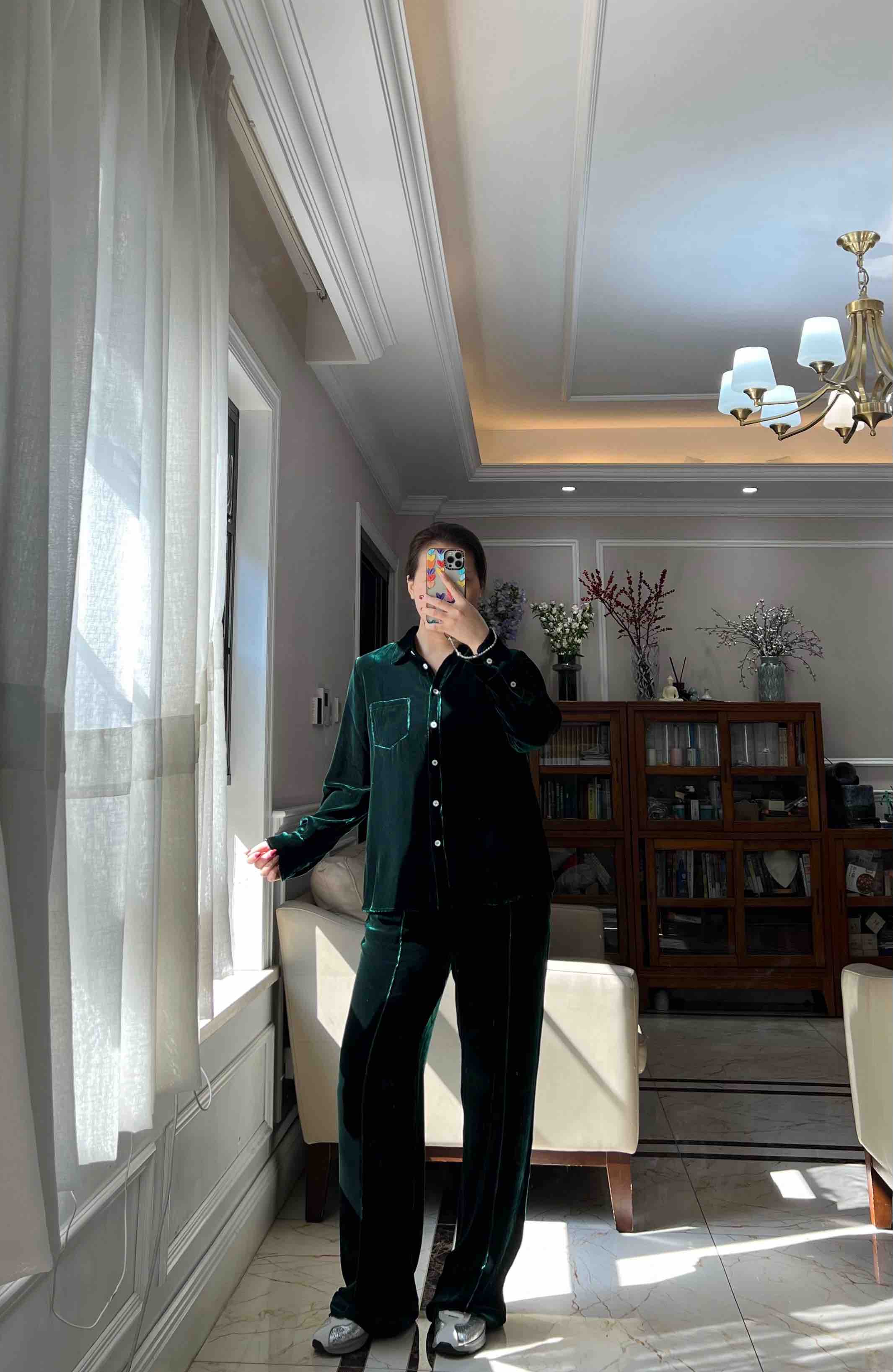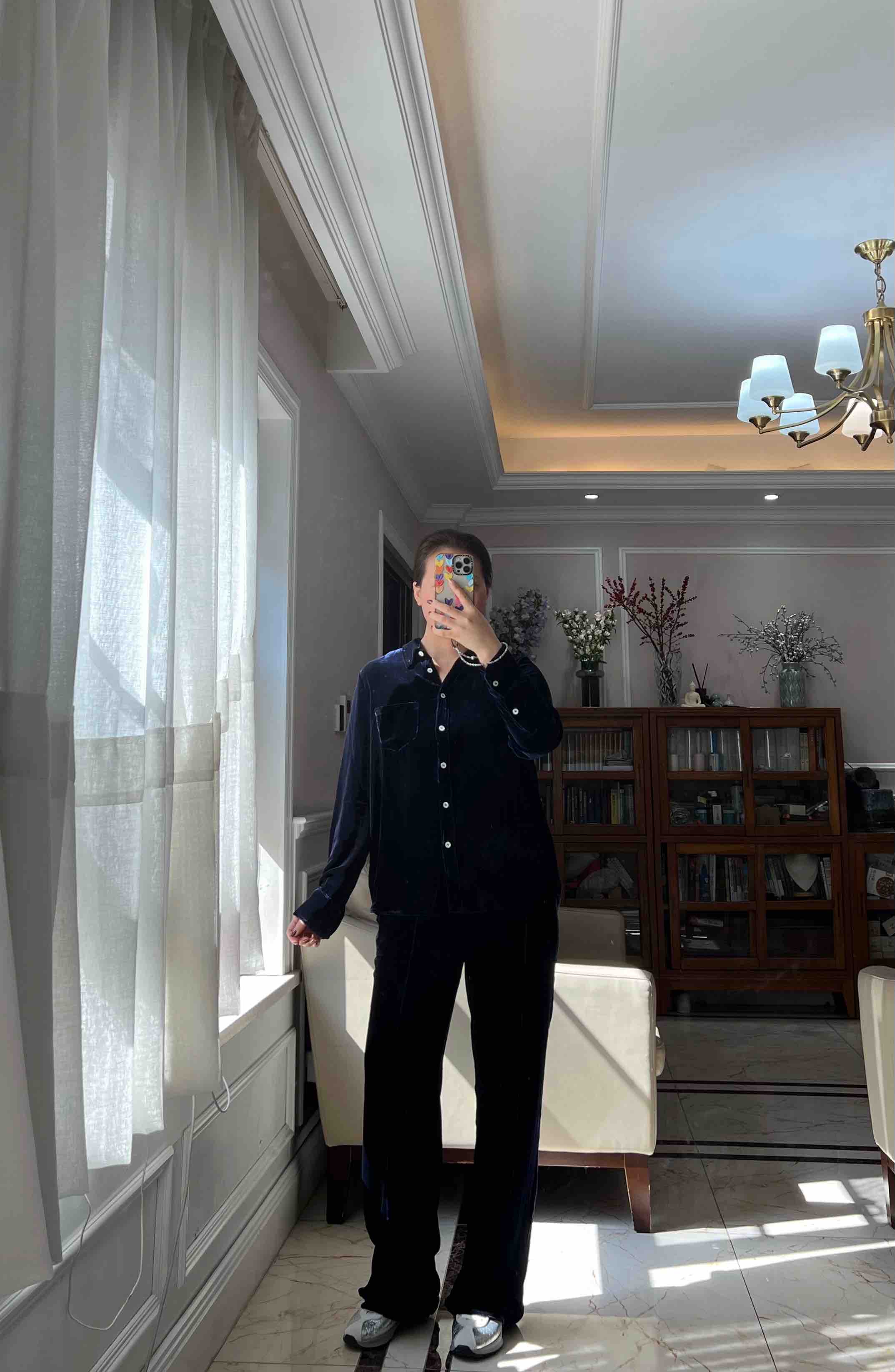 这种即带着真丝的光泽,又有绒面的质感,真的太令人愉悦了,慵懒宽松的版型,搭配珍珠贝母的点睛,完美😍