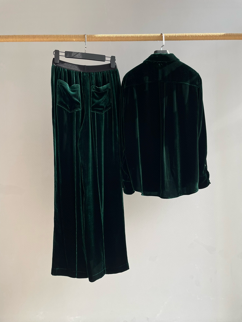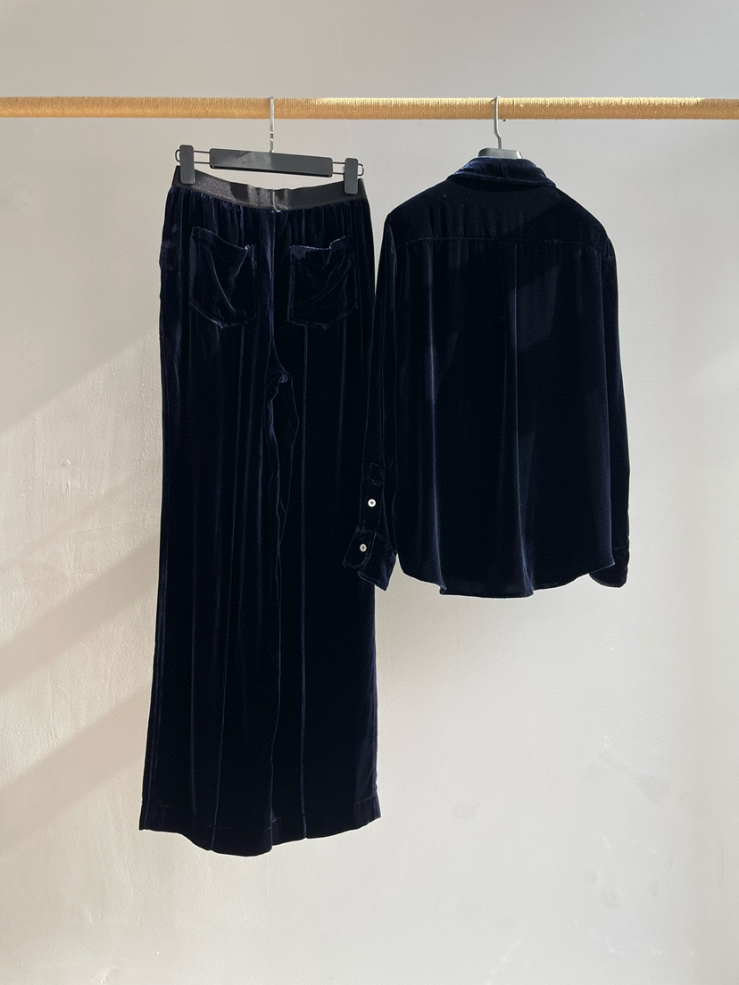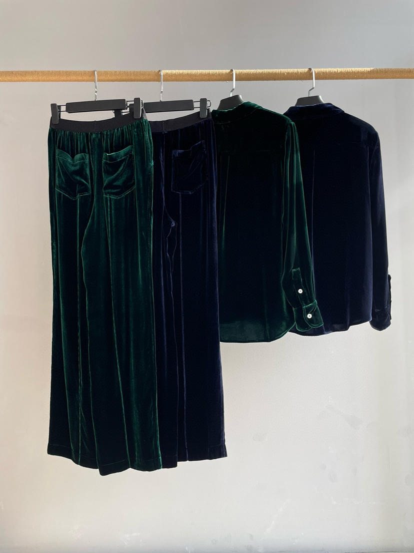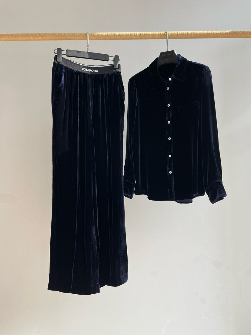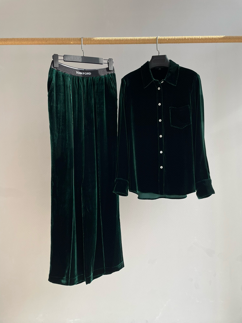 213-2 渠道货 TF老钱风 意大利进口 真丝天鹅绒 衬衫/阔腿长裤 恣意潇洒
