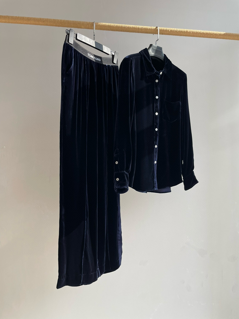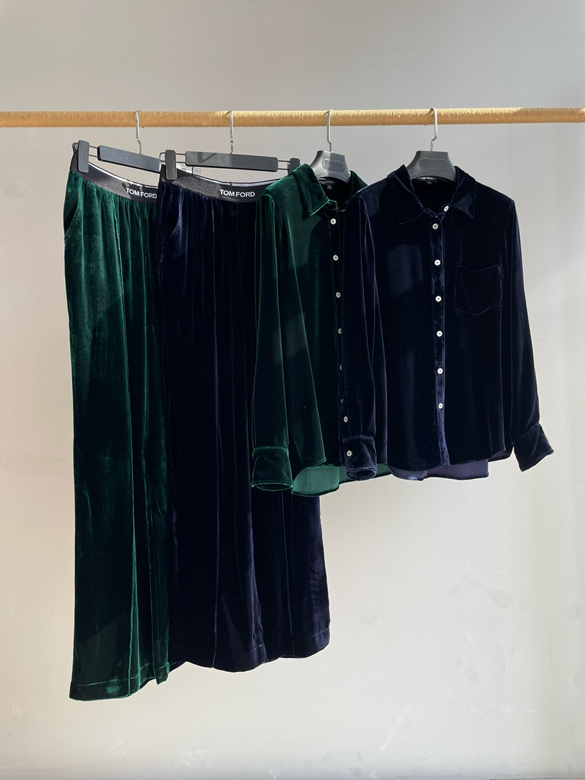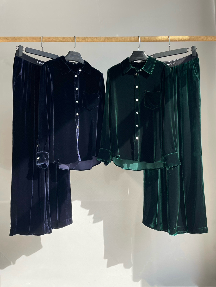 TF真丝天鹅绒廓形衬衫外套 + 阔腿裤,非常罕有的订单