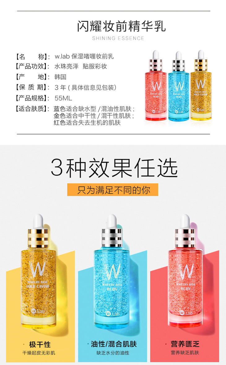 【现货】wlab超模妆前水分肌底精华液w.lab pony推荐控油补水保湿打底55ml
