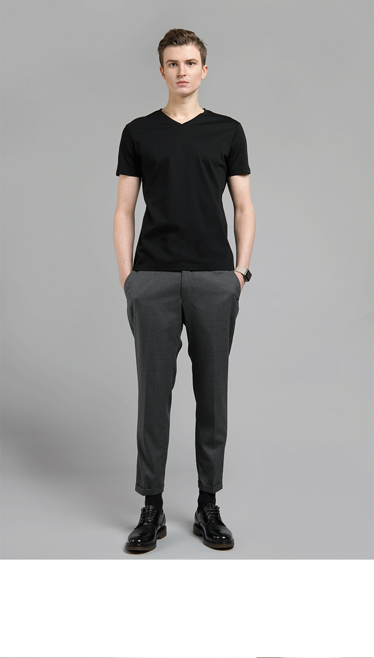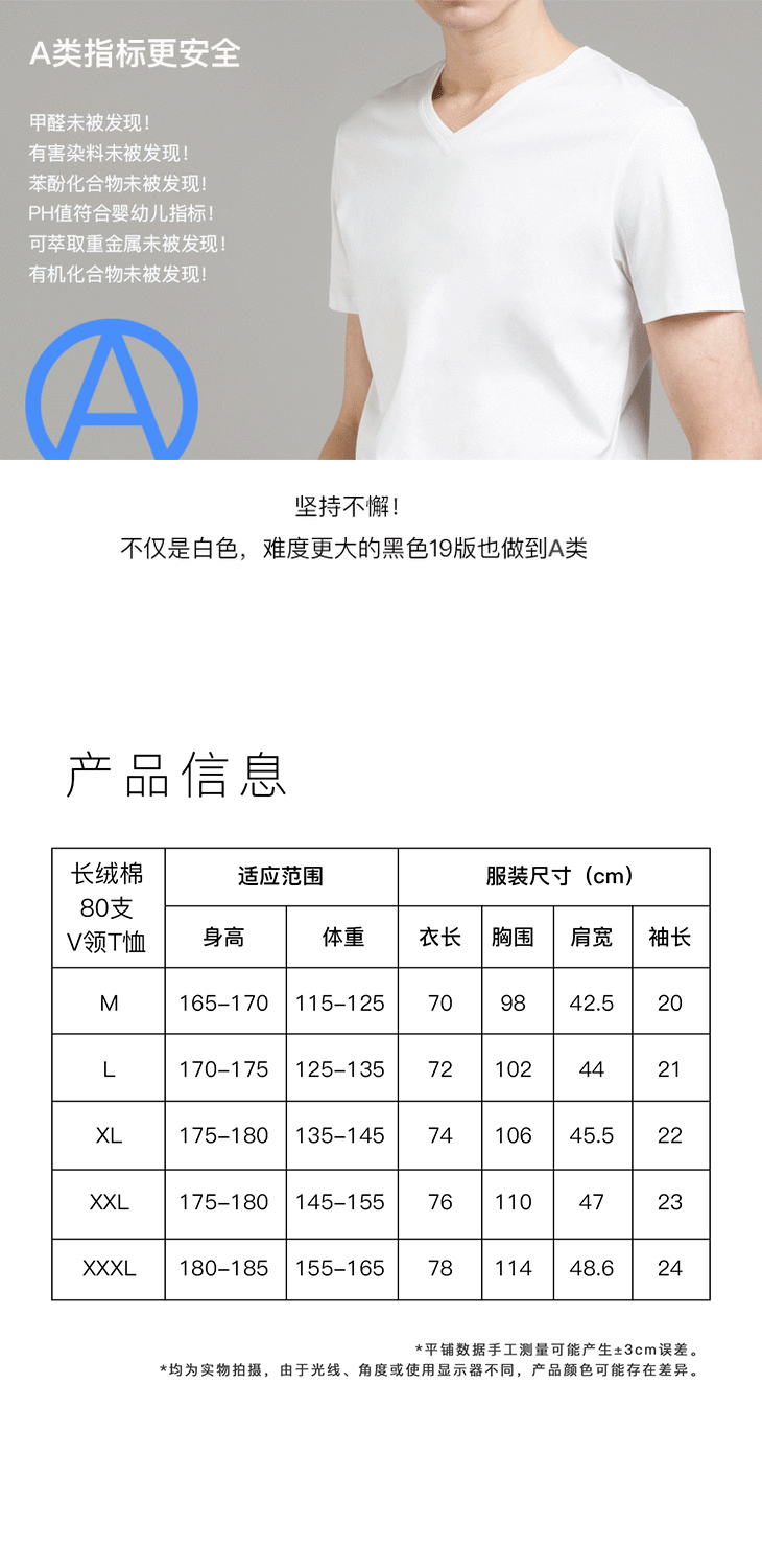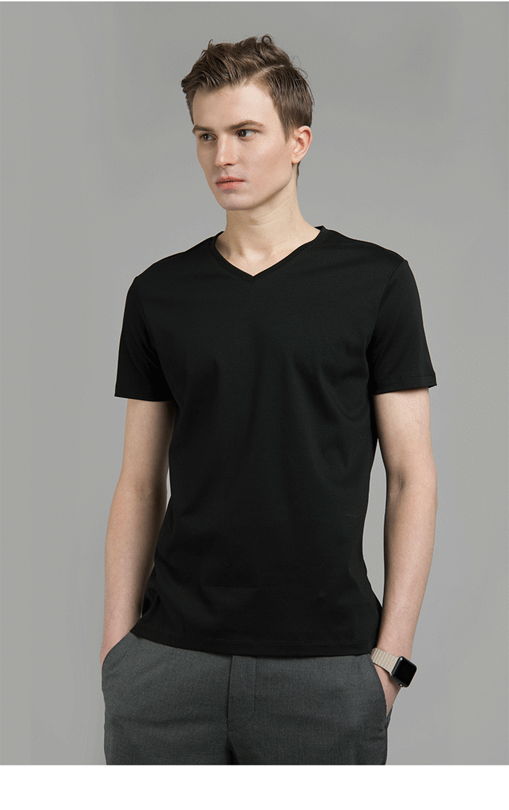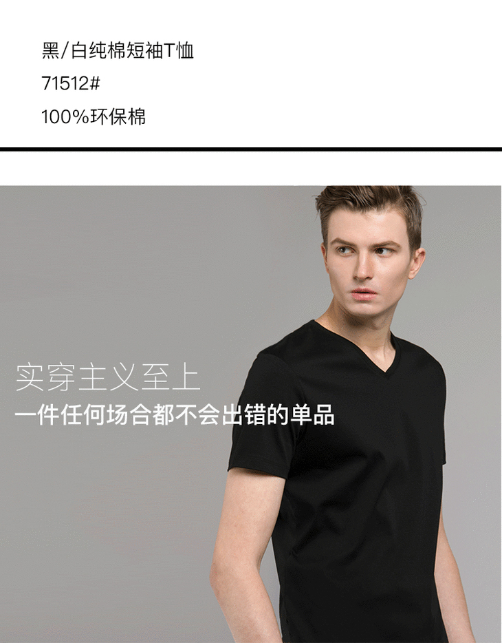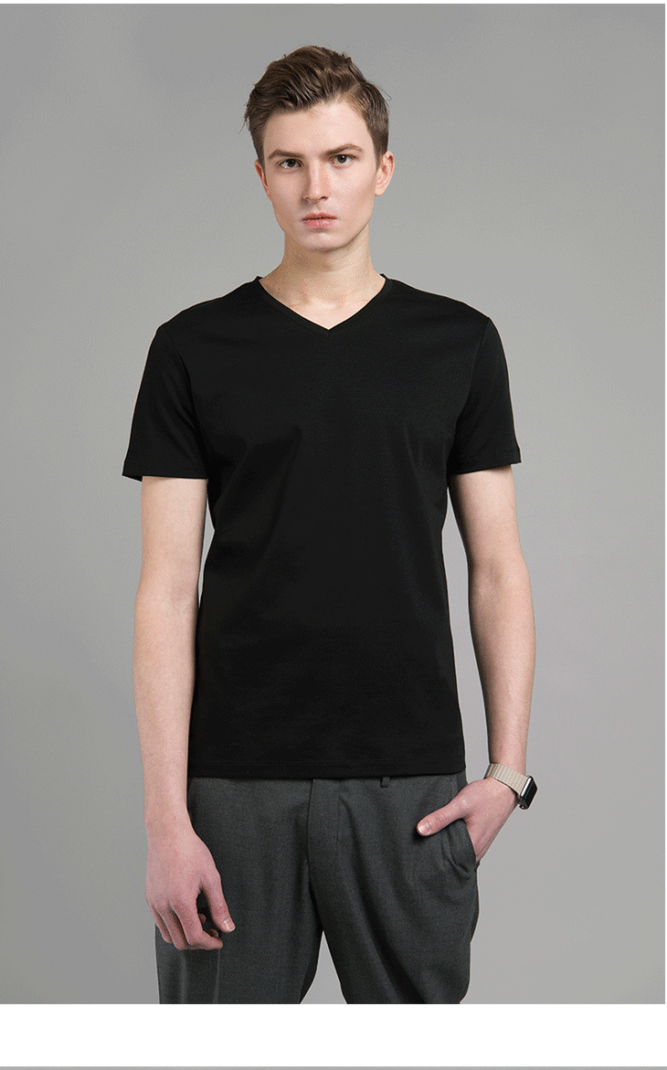 【特价清仓】男士新疆长绒棉80支黑白V领T恤