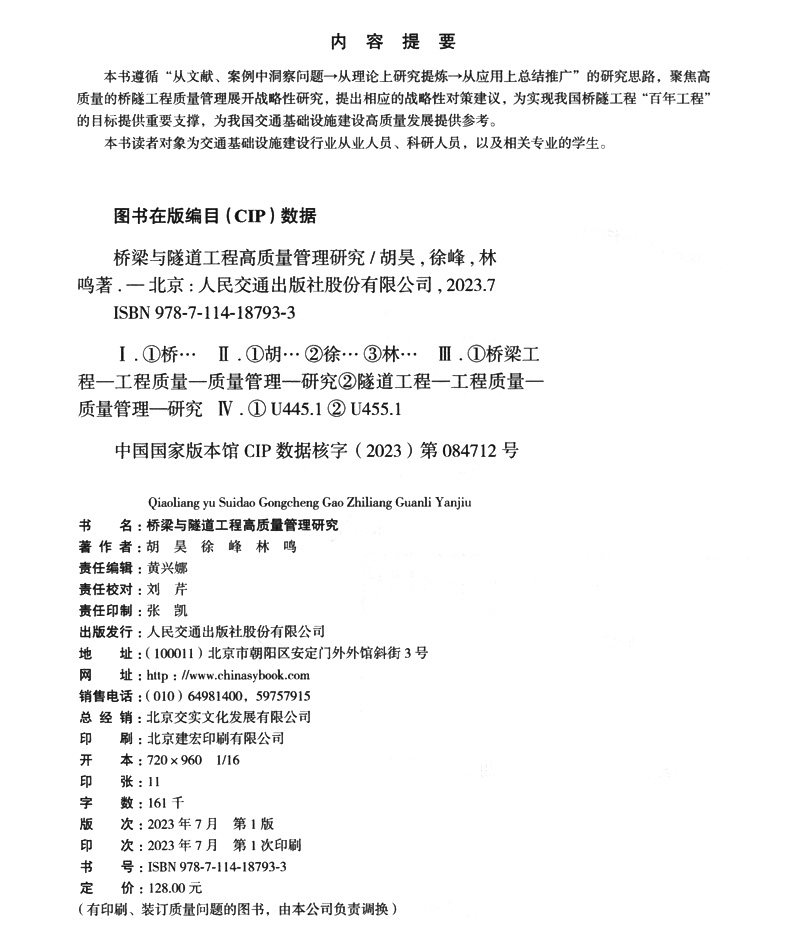 书名:桥梁与隧道工程高质量管理研究