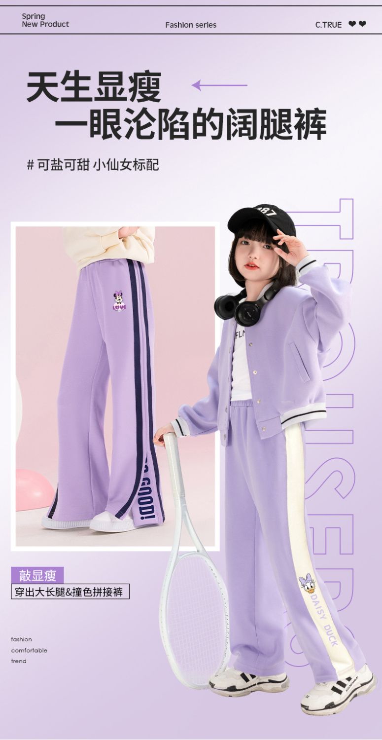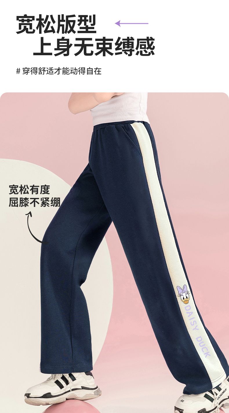迪士尼女童直筒裤子春秋款2025新款儿童春装休闲裤春季大童女孩