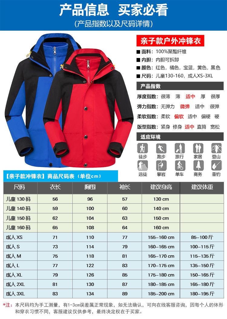 新款户外冲锋衣男女家庭亲子装春秋套装两件套外套滑雪服园服冬装