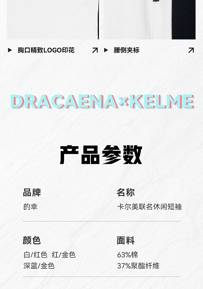 的幸卡尔美联名短袖上衣运动透气棉质短t恤短袖文化运动衫