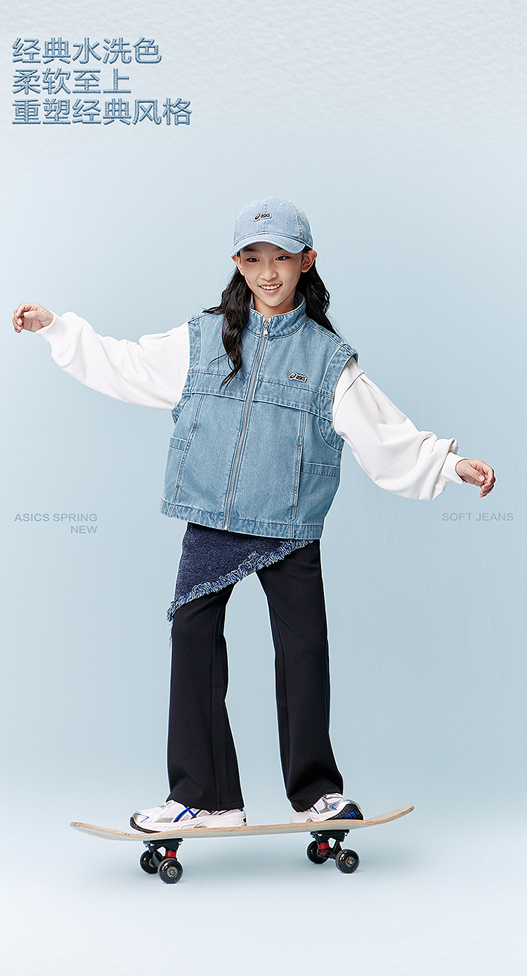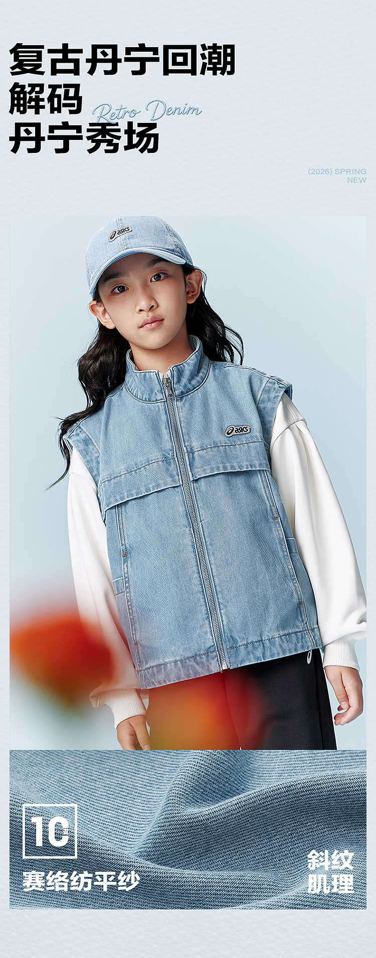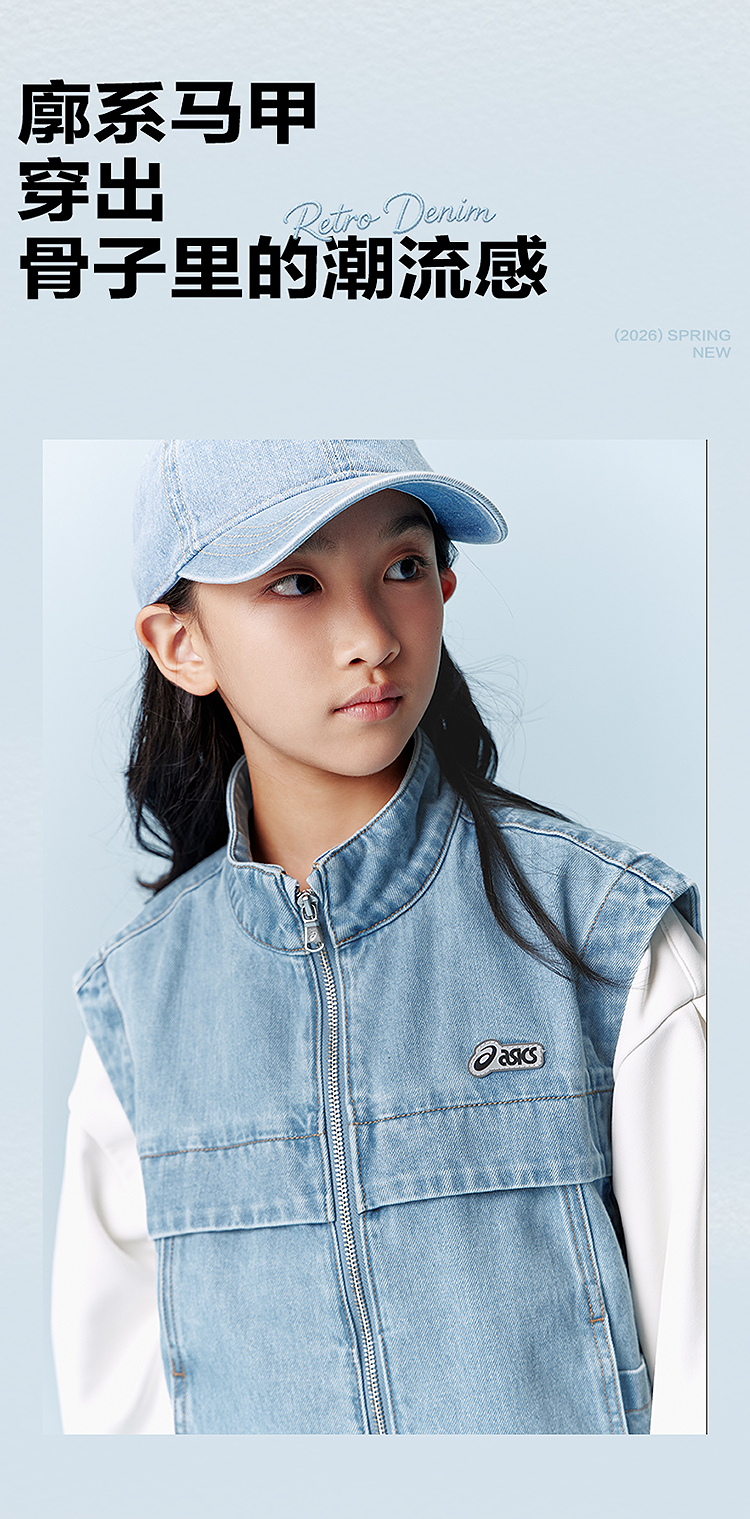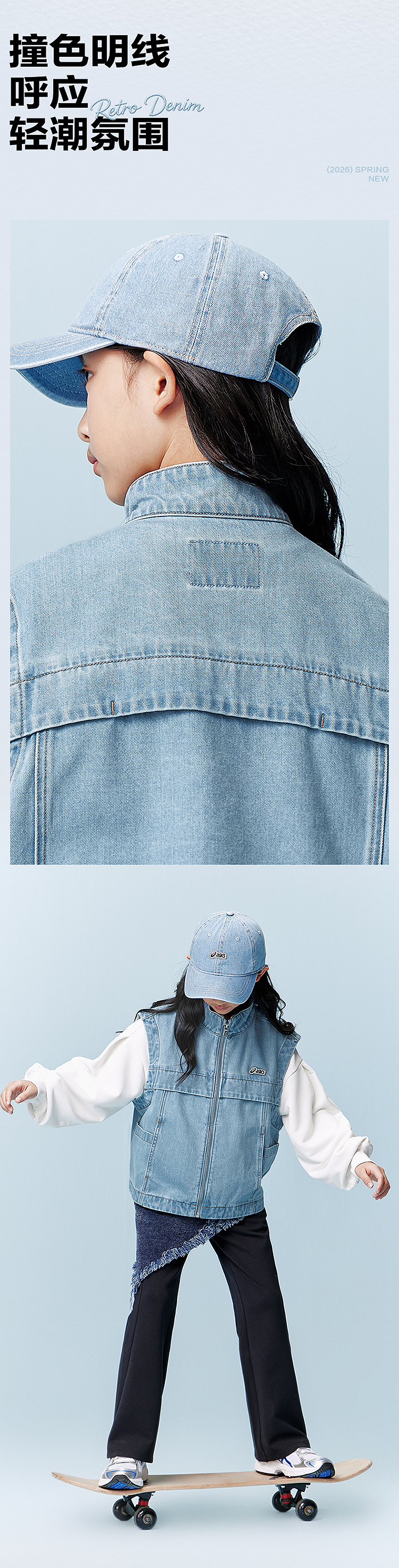 【商场同款】ASICS/亚瑟士儿童2026新款潮流廓形牛仔马甲柔软舒适
