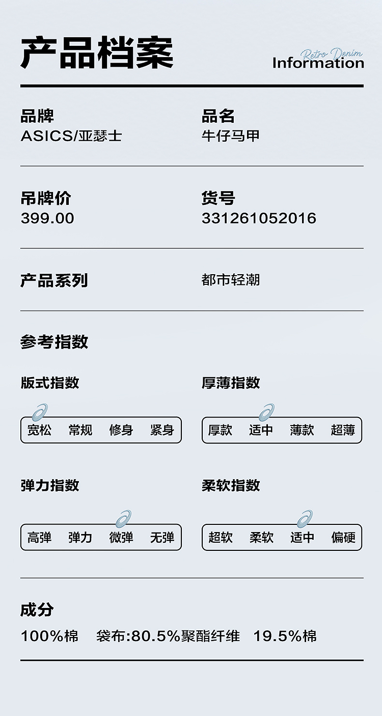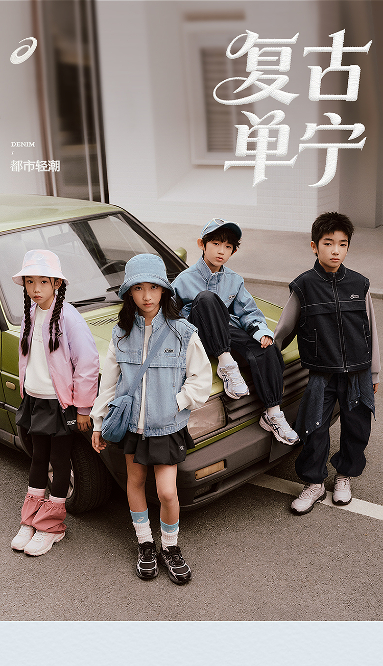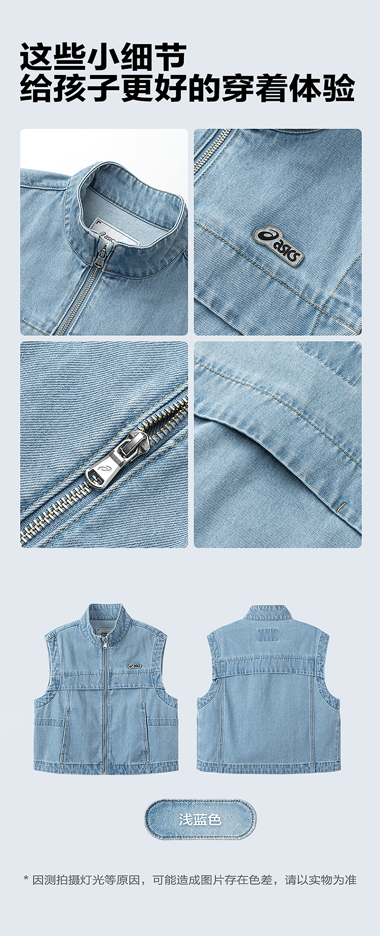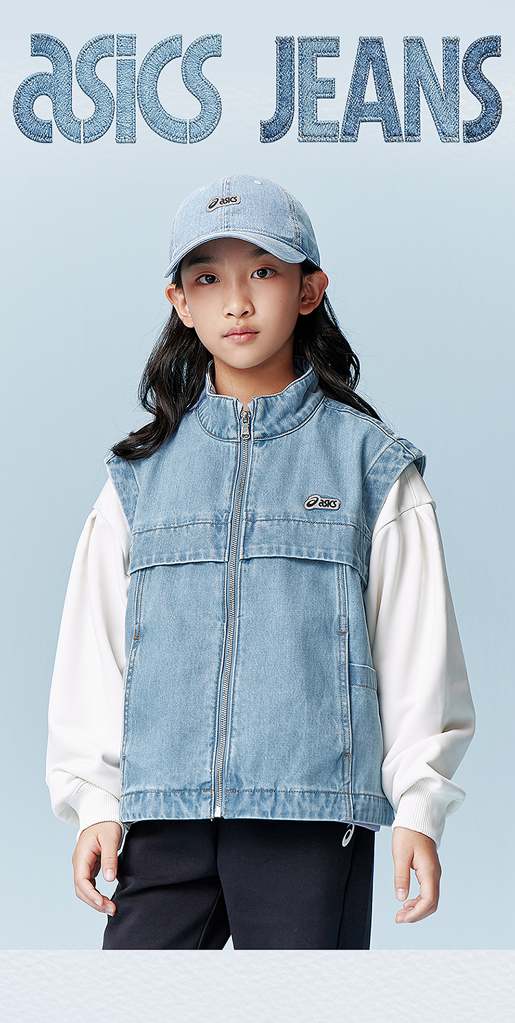 【商场同款】ASICS/亚瑟士儿童2026新款潮流廓形牛仔马甲柔软舒适