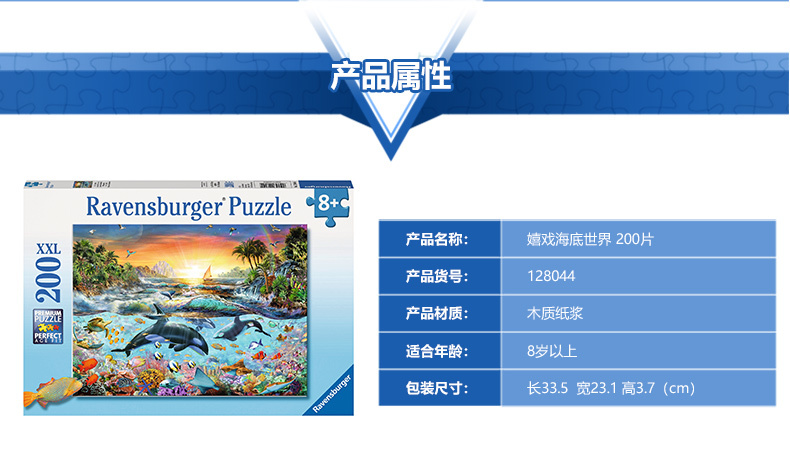 Ravensburger拼图 平面拼图200片嬉戏海底世界RAVC128044