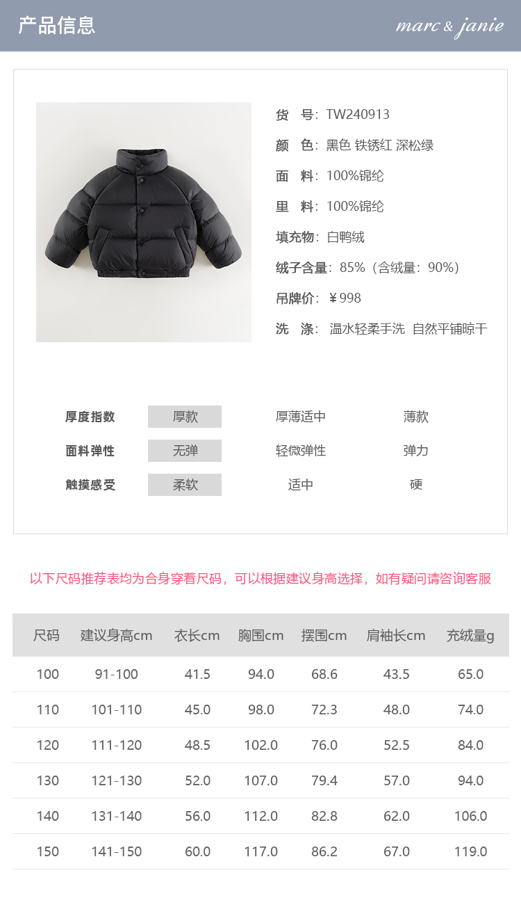 【三防】马克珍妮男女童美式校园加厚保暖羽绒服儿童冬款240913