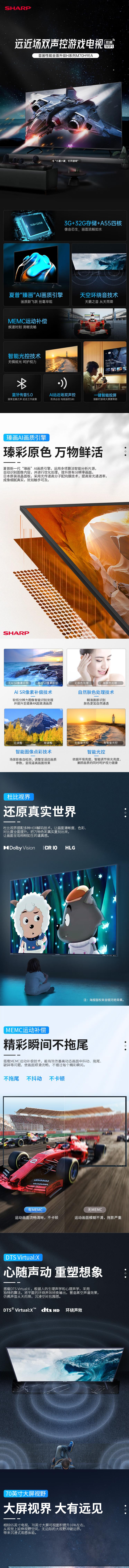 夏普70H9EA(13419) 70英寸 3+32G AI远场语音 双频WIFI 游戏电视【欧洲杯】