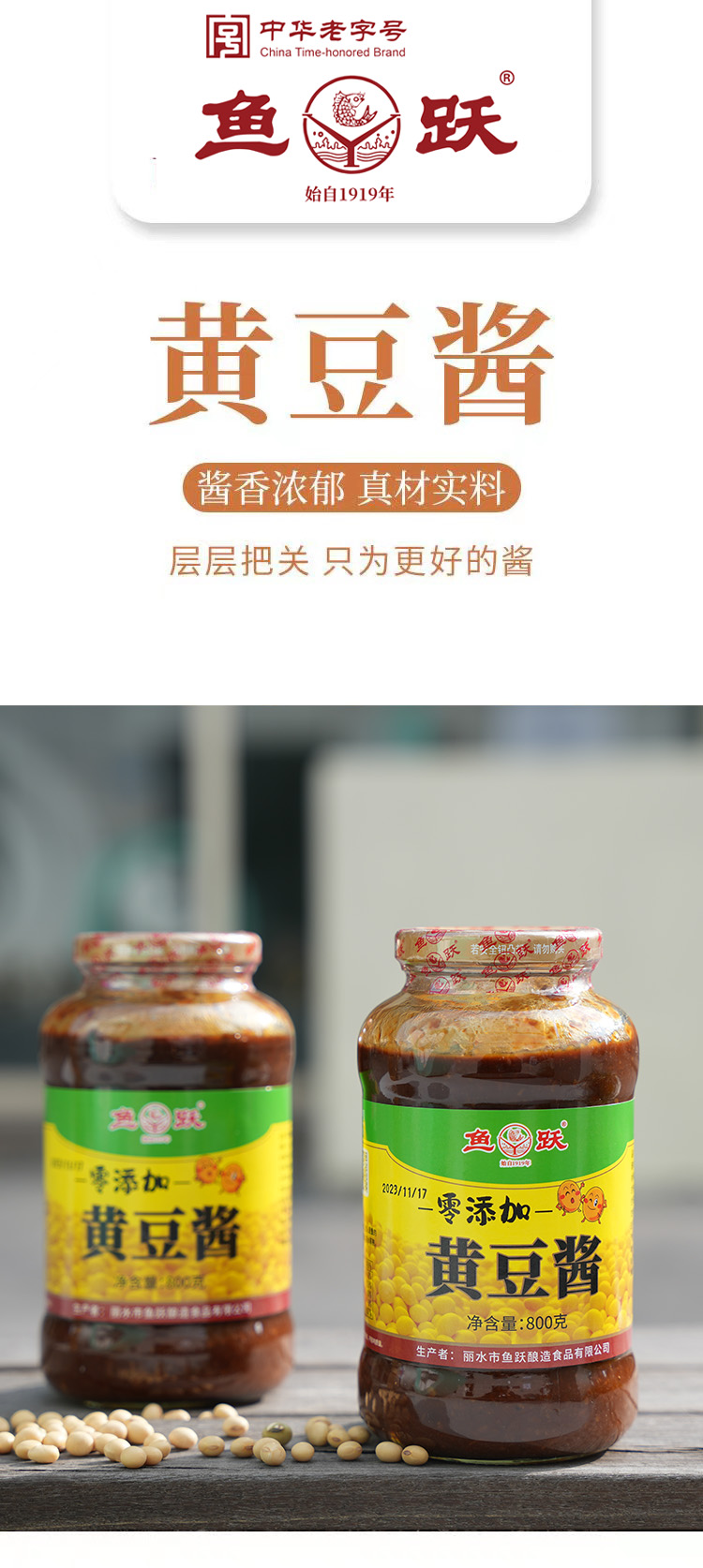 【零添加】黄豆酱 中华老字号 300天古法工艺纯粮食酿造零添加 鱼跃
