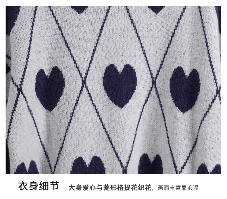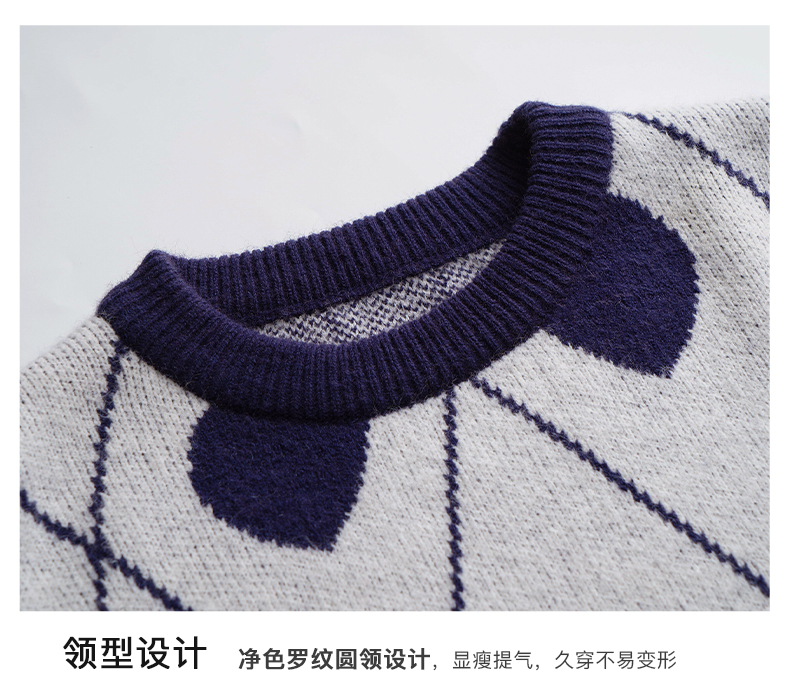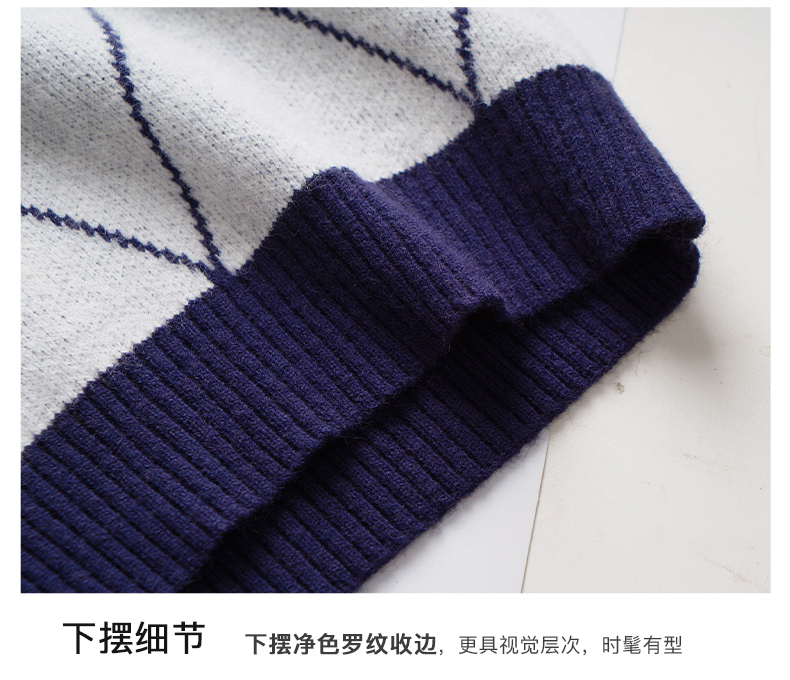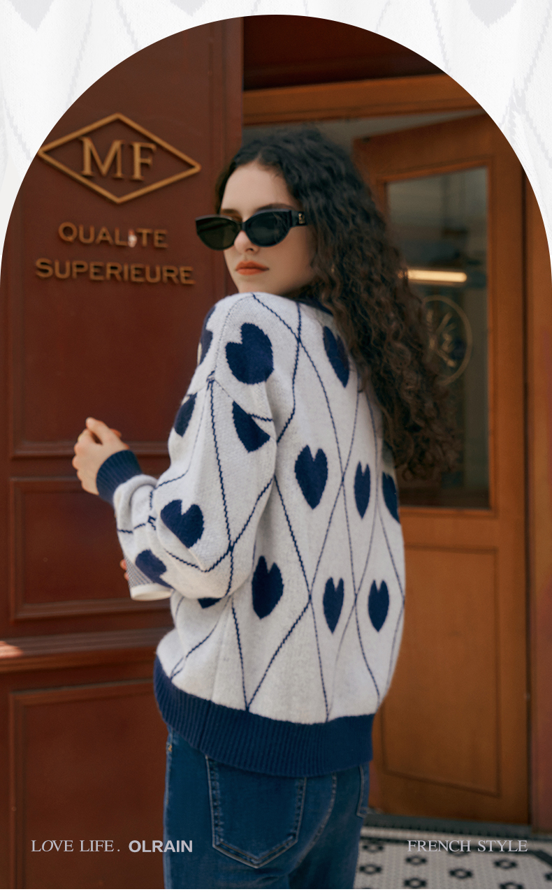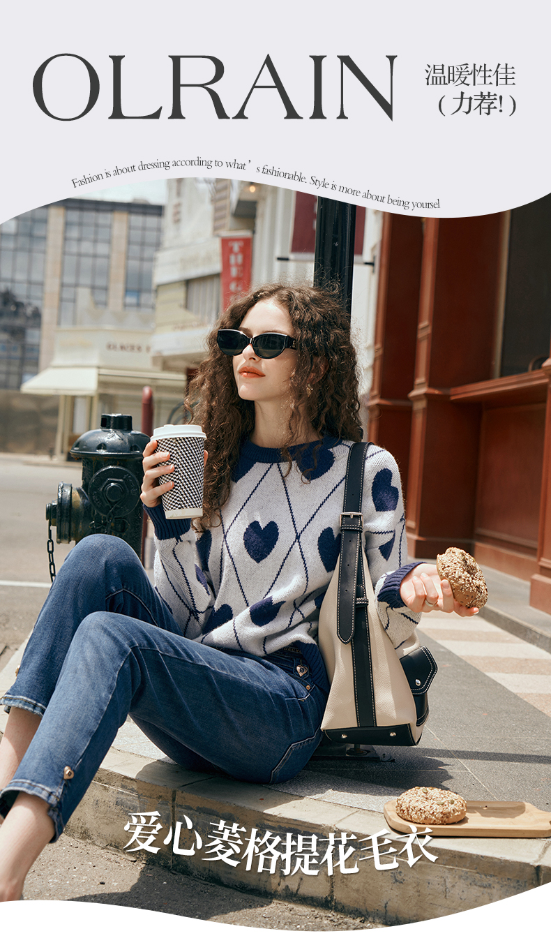 欧芮儿复古菱格毛衣女秋2023新款宽松慵懒软糯圆领提花套头针织衫