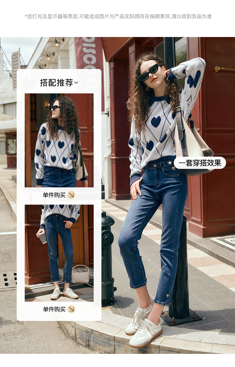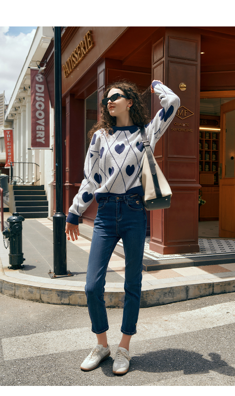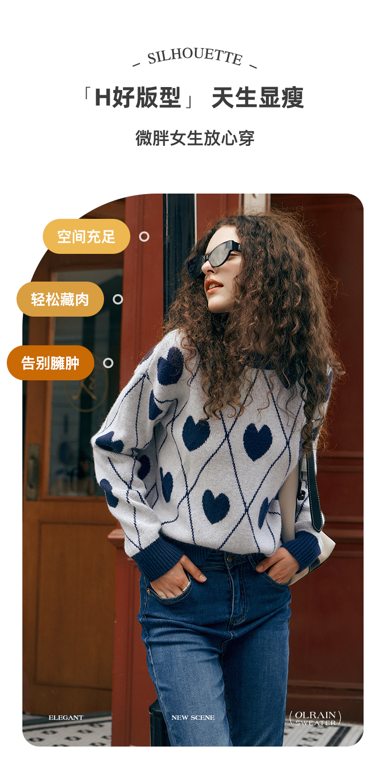 欧芮儿复古菱格毛衣女秋2023新款宽松慵懒软糯圆领提花套头针织衫