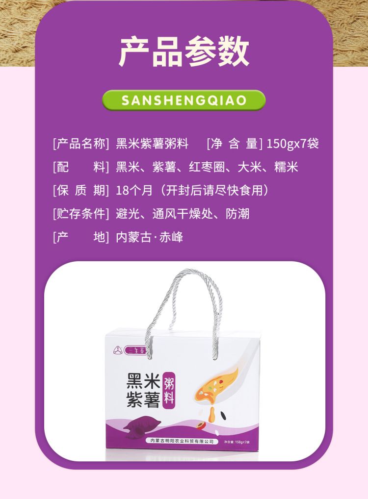 内蒙古翁牛特旗三生荞黑米紫薯粥料150g*7袋/箱