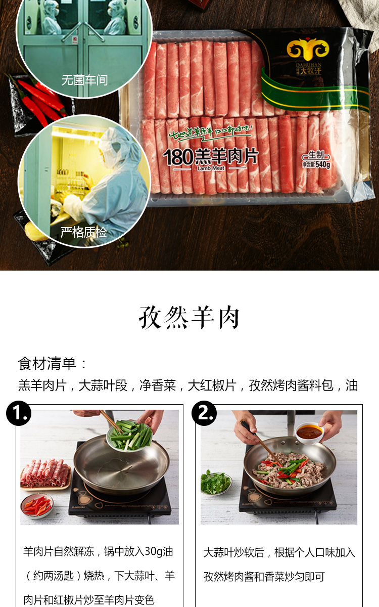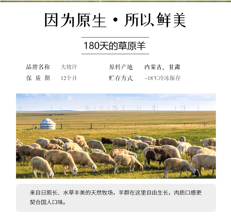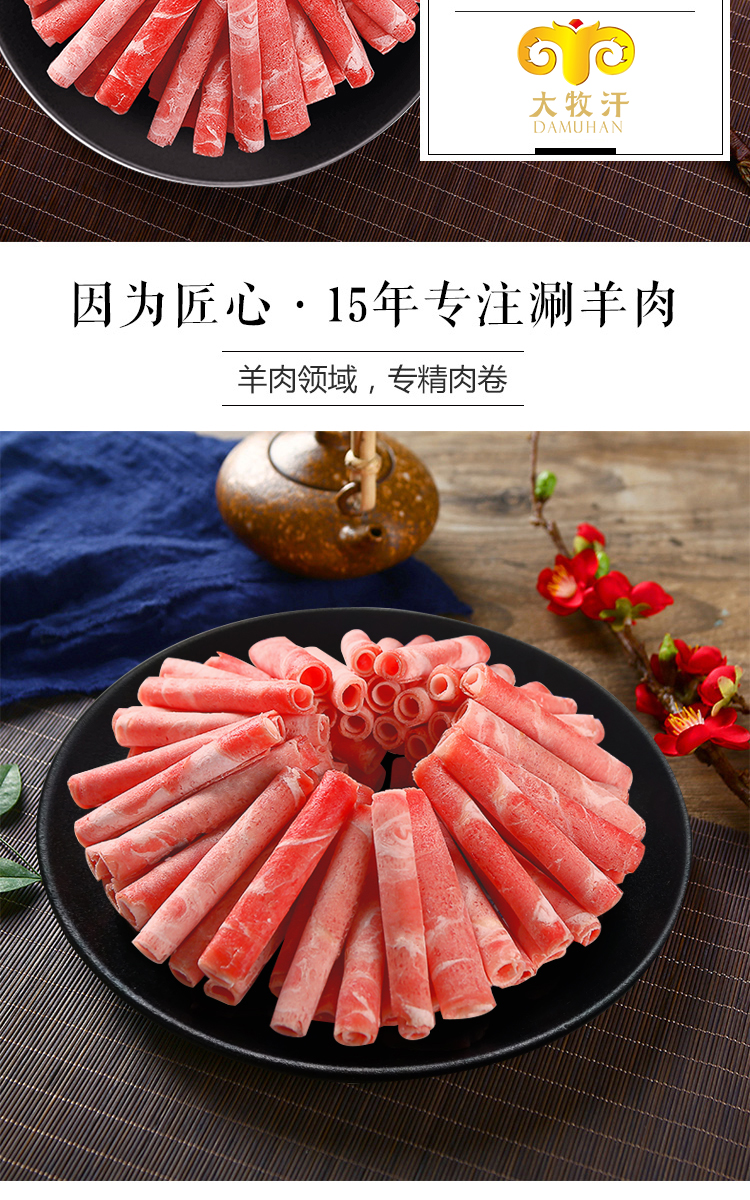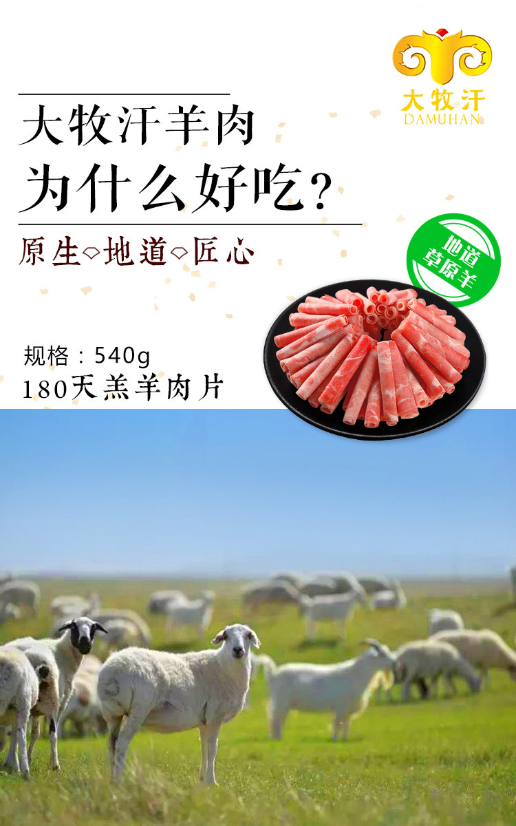 大牧汗 180羔羊原切肉片 540g/袋 火锅食材 羊肉卷 草饲散养 涮羊肉 羊肉国产