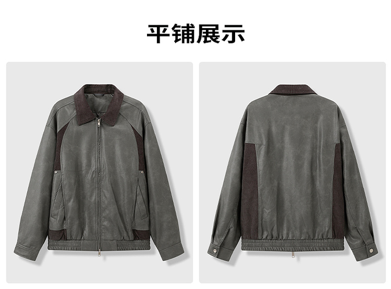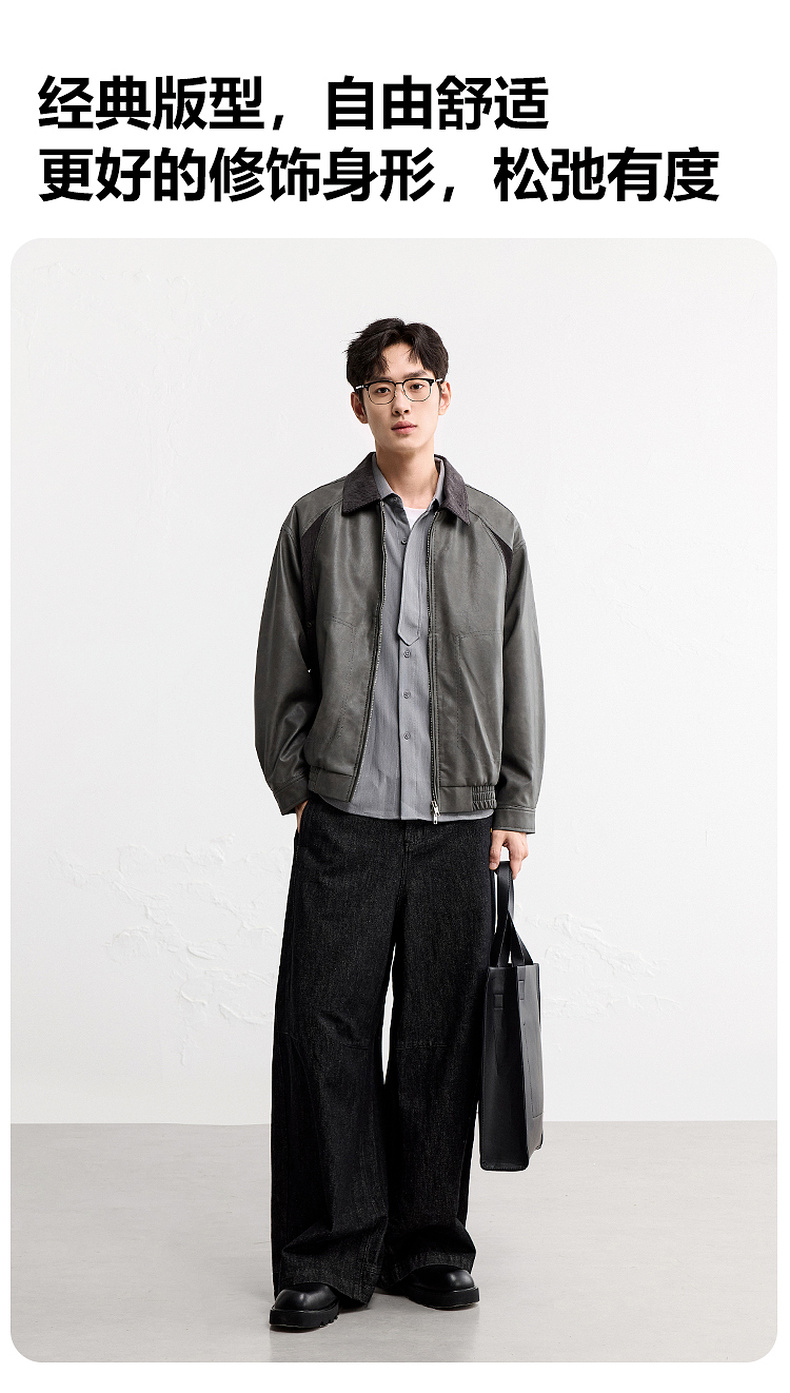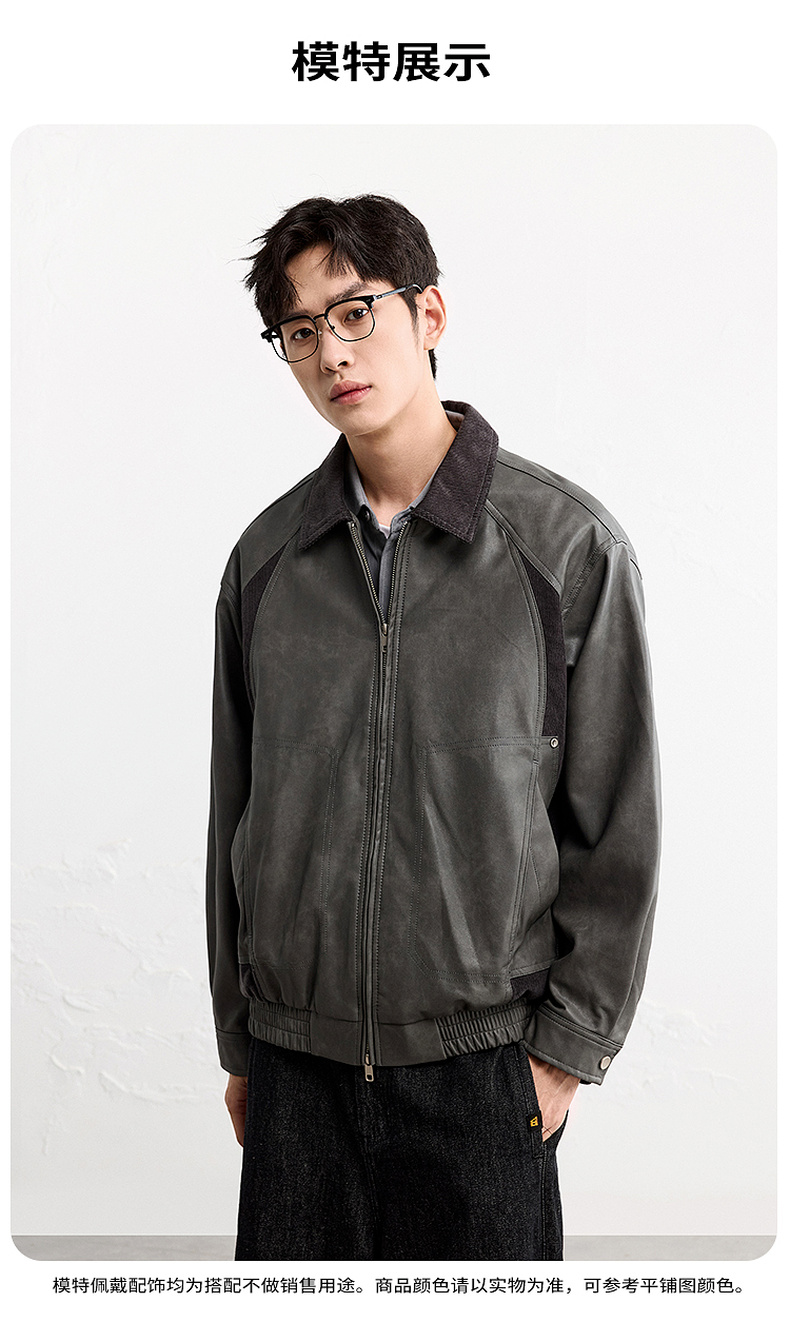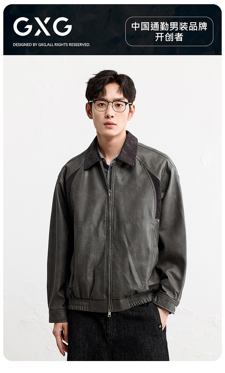 GXG男装25秋季时尚撞色领口简约百搭日常通勤男式翻领PU夹克K&C