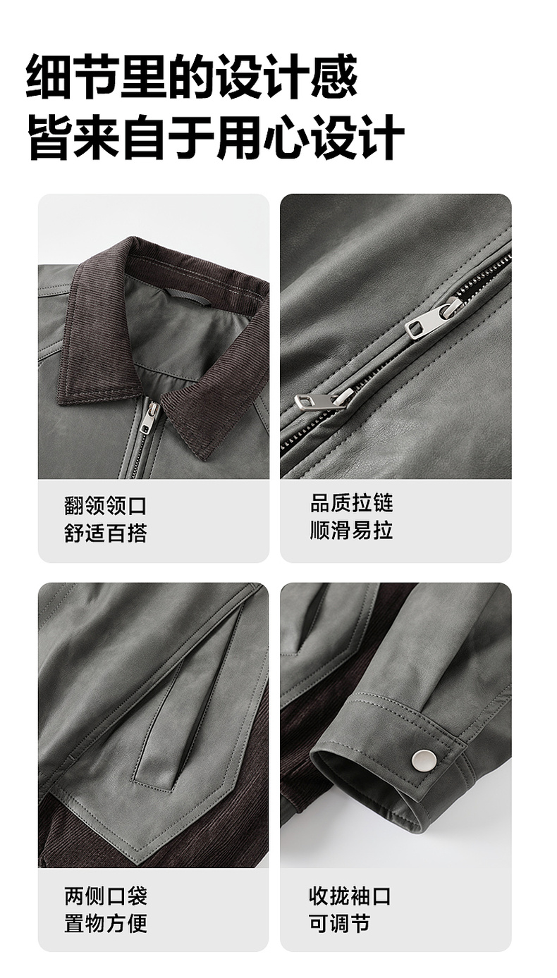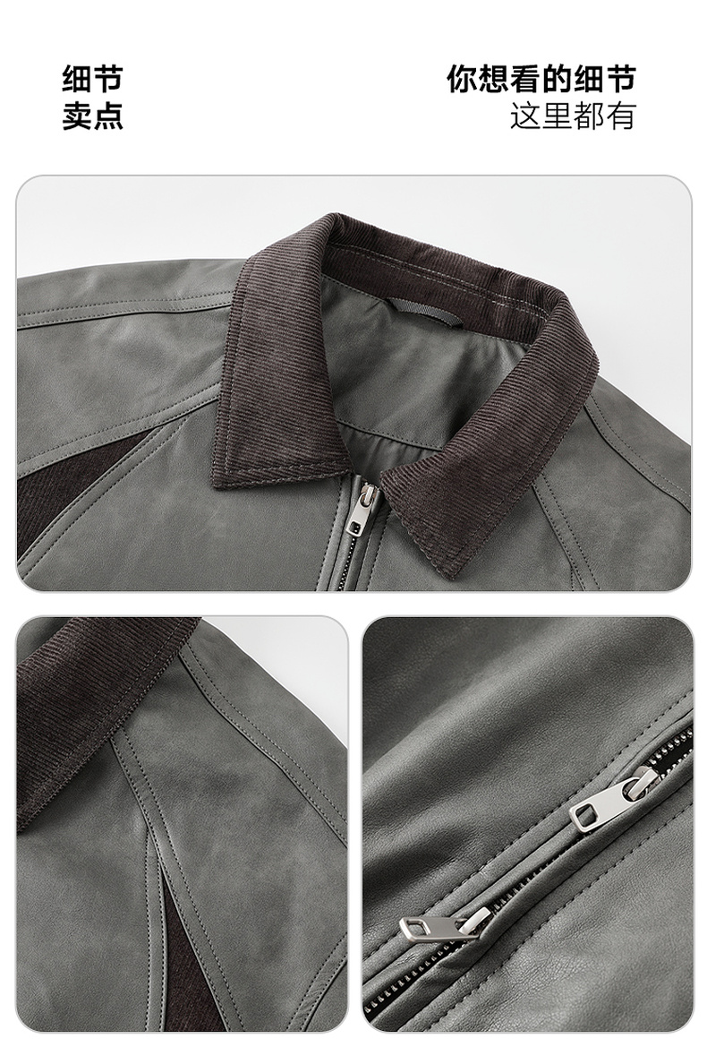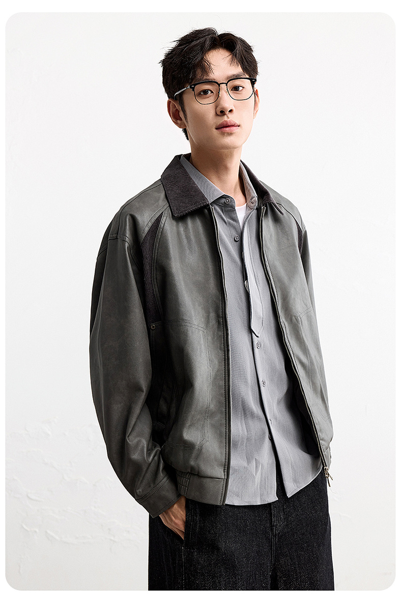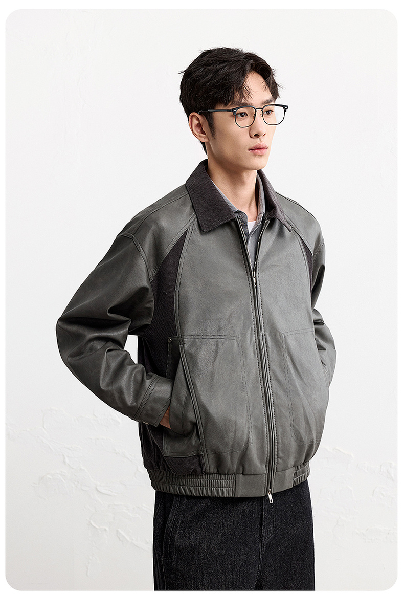 GXG男装25秋季时尚撞色领口简约百搭日常通勤男式翻领PU夹克K&C