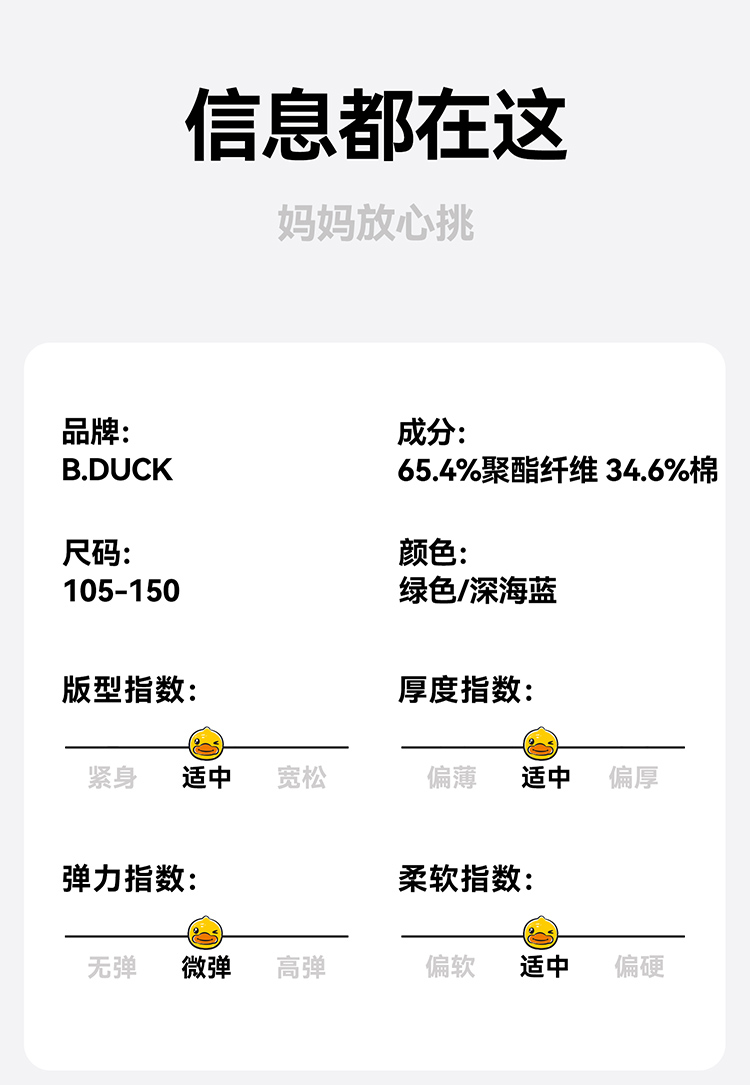 B.Duck小黄鸭童装春秋针织裤105-150 BF3563091