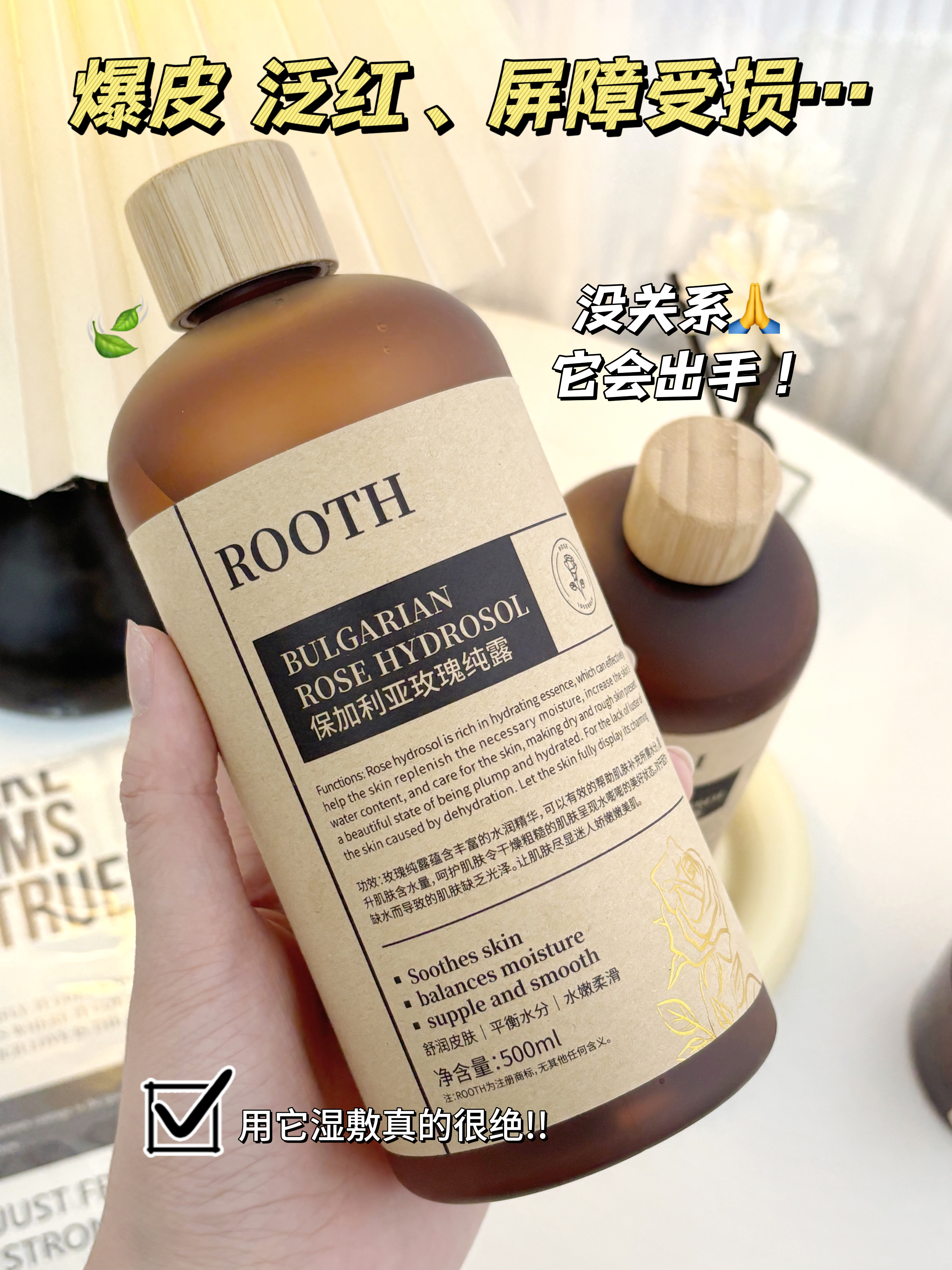 🔥韩国实验室认证‼️100%保加利亚玫瑰原液🫧纯鲜花🥀蒸馏萃取💦真正不含一滴水 送1包湿敷棉【ROOTH保加利亚玫瑰纯露】