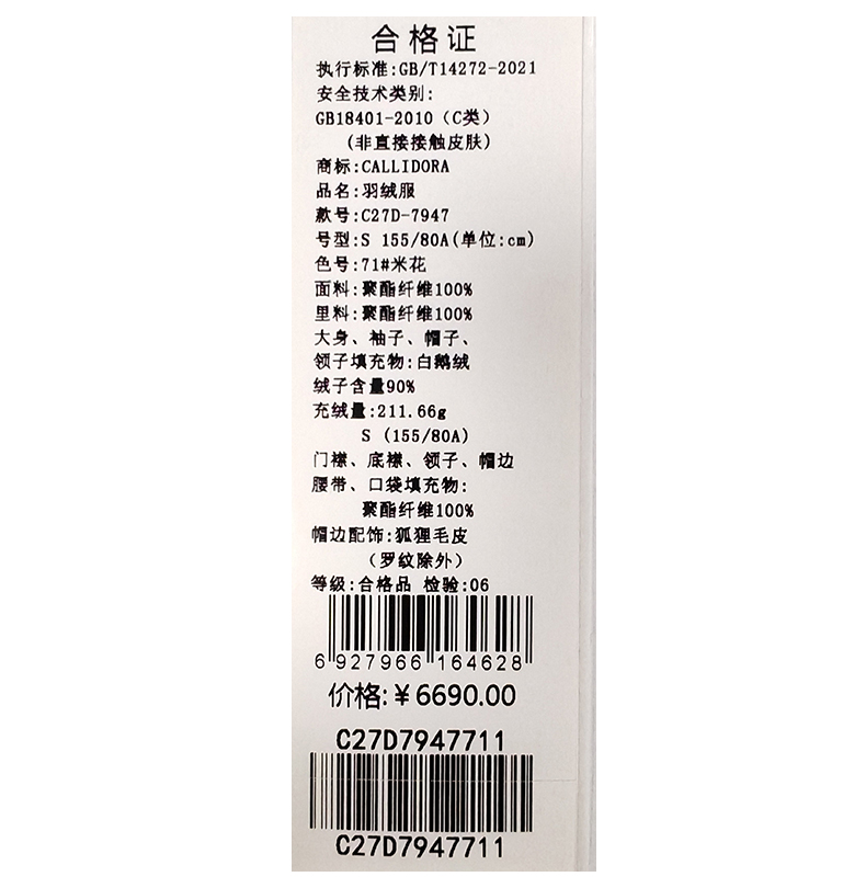 卡莉朵拉羽绒服C27D7947