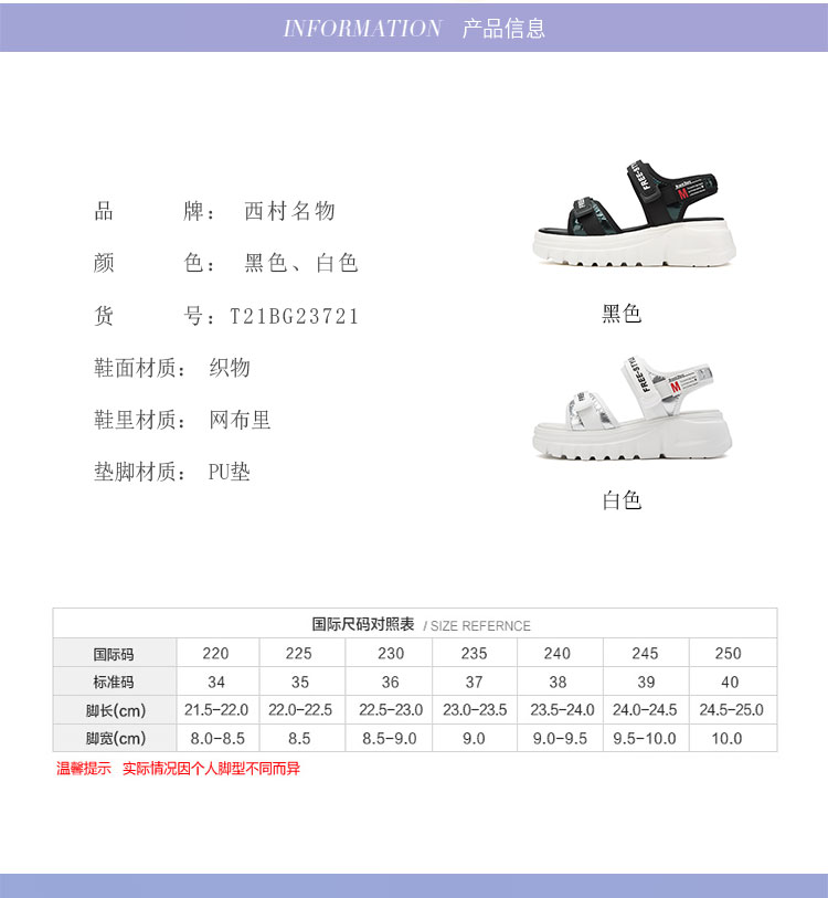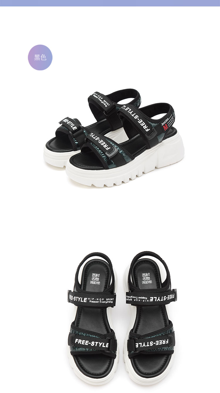 西村名物2021夏新款厚底百搭松糕女凉鞋T21BG23721