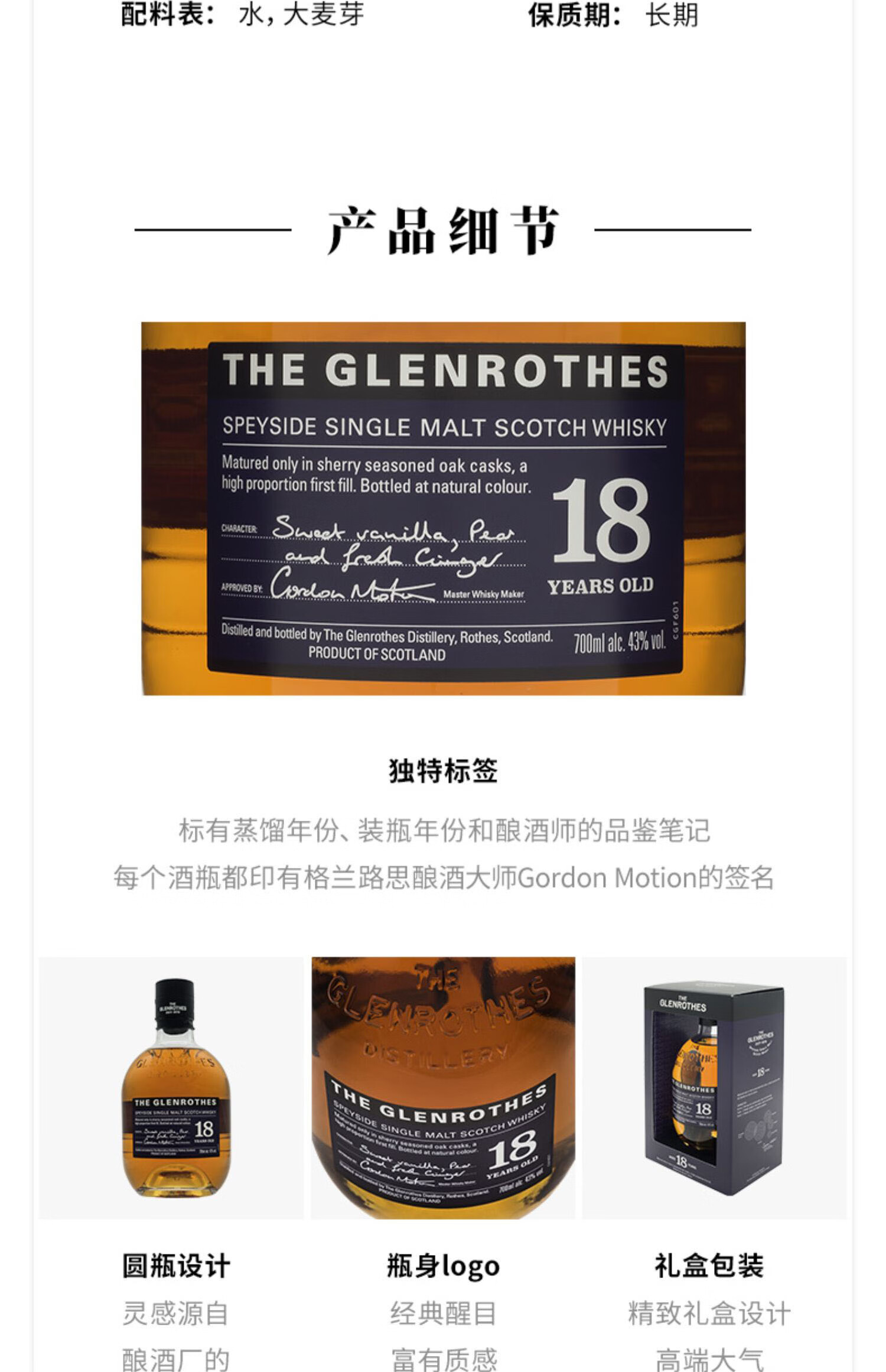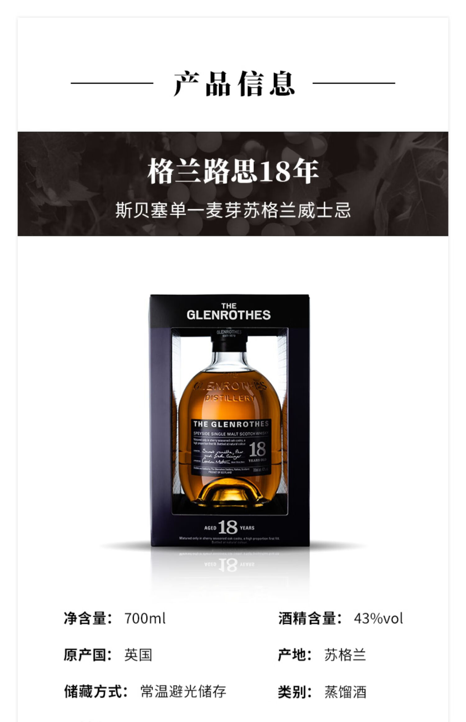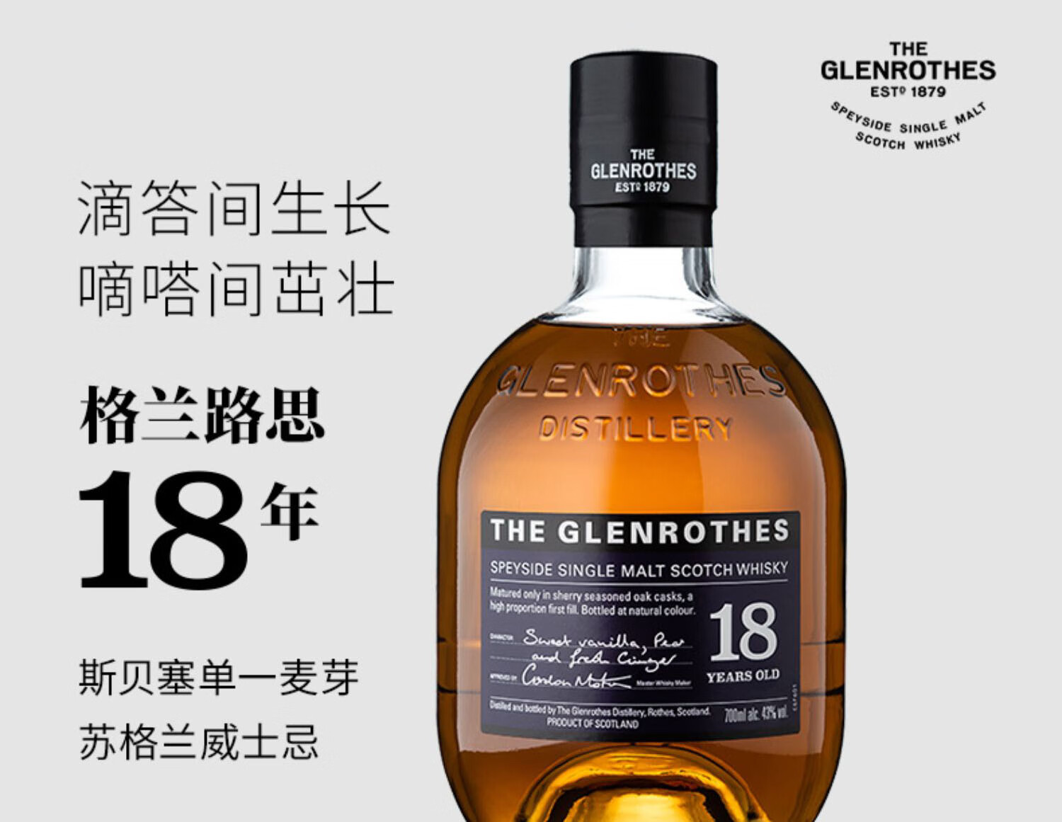 格兰路思18年尊贵特选单一麦芽威士忌 700ml