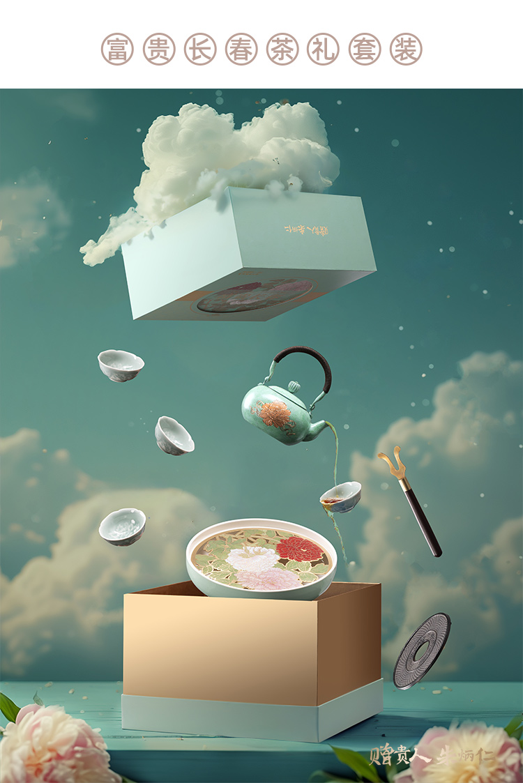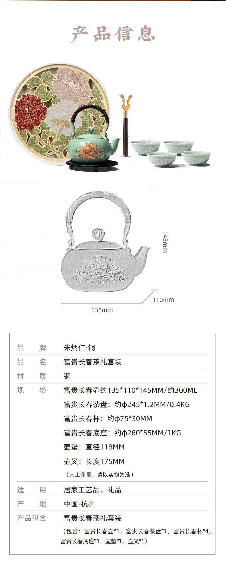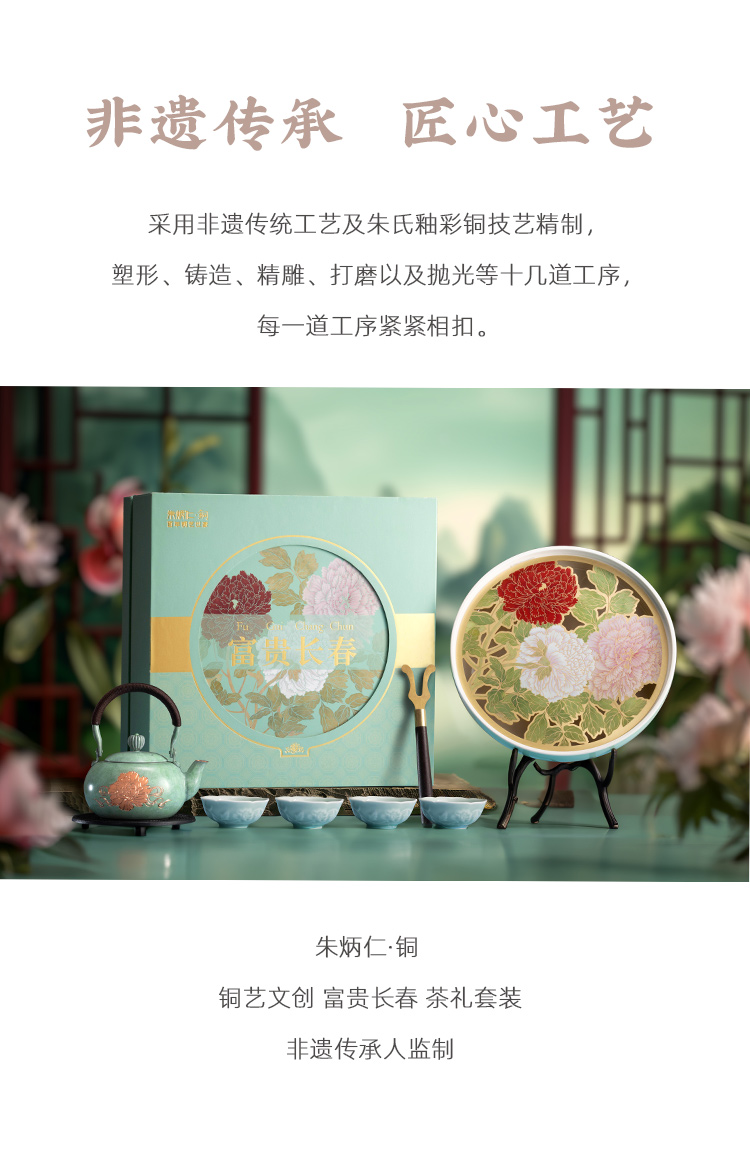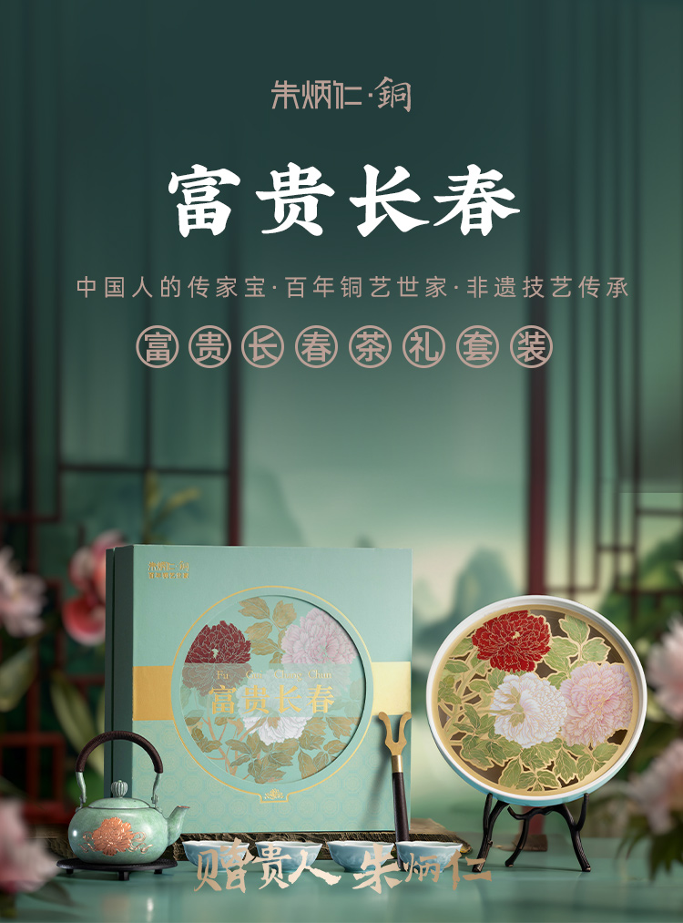 朱炳仁铜 | 富贵长春茶礼套装