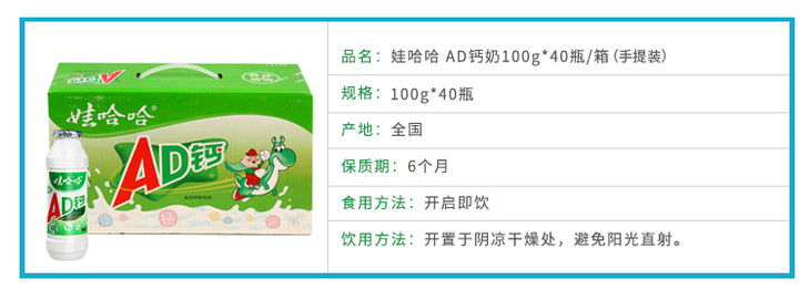娃哈哈AD钙奶100ml*40瓶 儿童酸甜奶 早餐 年货 小瓶 哇哈哈 整箱