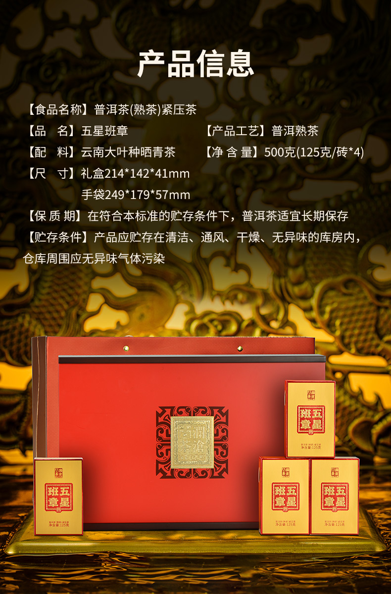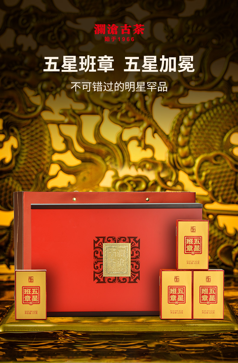 澜沧古茶2022年五星班章普洱茶熟茶金砖整盒125g*4/盒