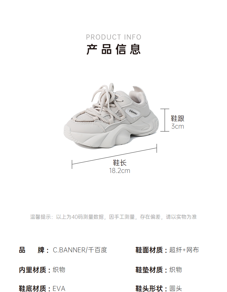 千百度童鞋厚底老爹鞋少女鞋秋季增高透气网面运动休闲鞋A24480307