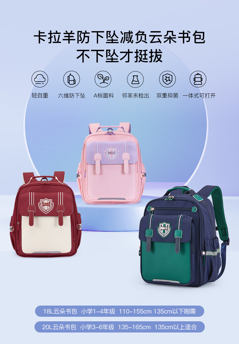【1-6年级】卡拉羊云朵书包3.0卓越系列 2230/2700