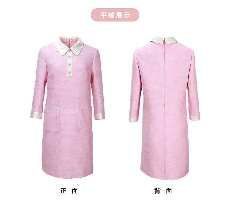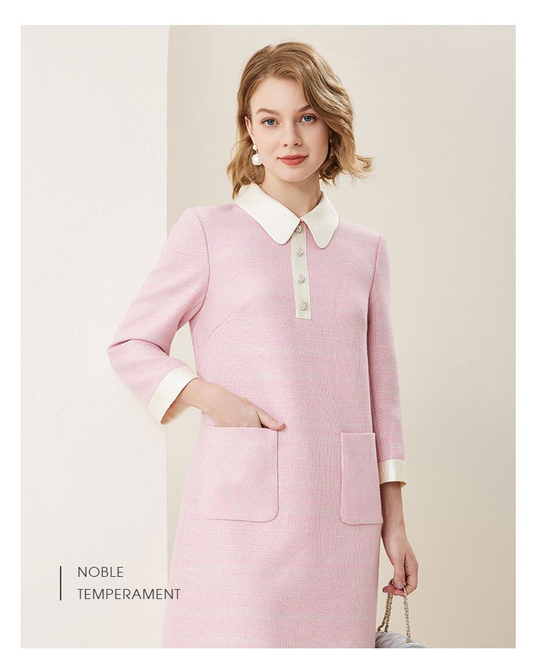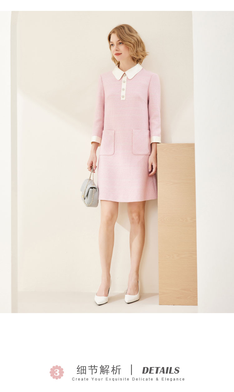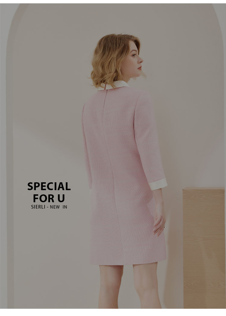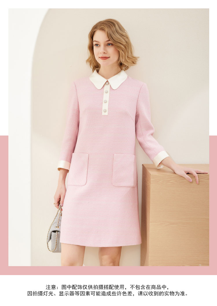 MC812斯尔丽瑟俪商场同款2022年秋上新柔粉色娃娃领高腰通勤长袖连衣裙