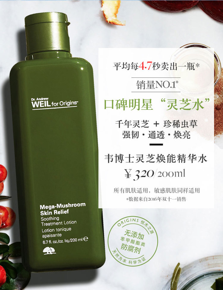 【现货】悦木之源/ORIGINS 韦博士灵芝焕能精华水 菌菇水