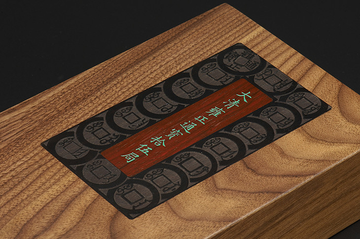 黑胡桃双层(雍正十五局)套装盒, 采用优良的进口美国黑胡桃实木,精工细作,外盒与内托盘黑胡桃实木材质,盒面黑胡桃中镶嵌紫光檀实木,可自定义刻钱币立体图案;紫光檀中再镶嵌血檀,可自定义刻钱币标题文字,内托盘中各带一块隔板,采用DMF厚贴黑胡桃实木(防变型),阴刻相应的钱币介绍文字,双层内托开孔直径为45mm。工艺复杂,高端大方!盒体尺寸:280mm*141mm*59mm。雍正十五局套盒:默认内配15个内径27的圆盒。此盒设计新颖,手感厚沉,外出携带方便,适合展示!切忌干燥(勿放干燥箱),暴晒,应置放于阴凉处,温差干湿度相对比较稳定的环境中,可有效的防止变型!