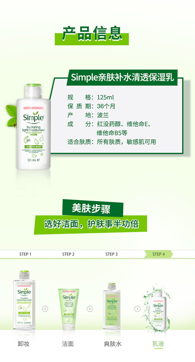 【爆款超低价预售 急单慎拍】Simple清妍亲肤温和无负担敏感肌滋润保湿修护精华锁水乳液125ml