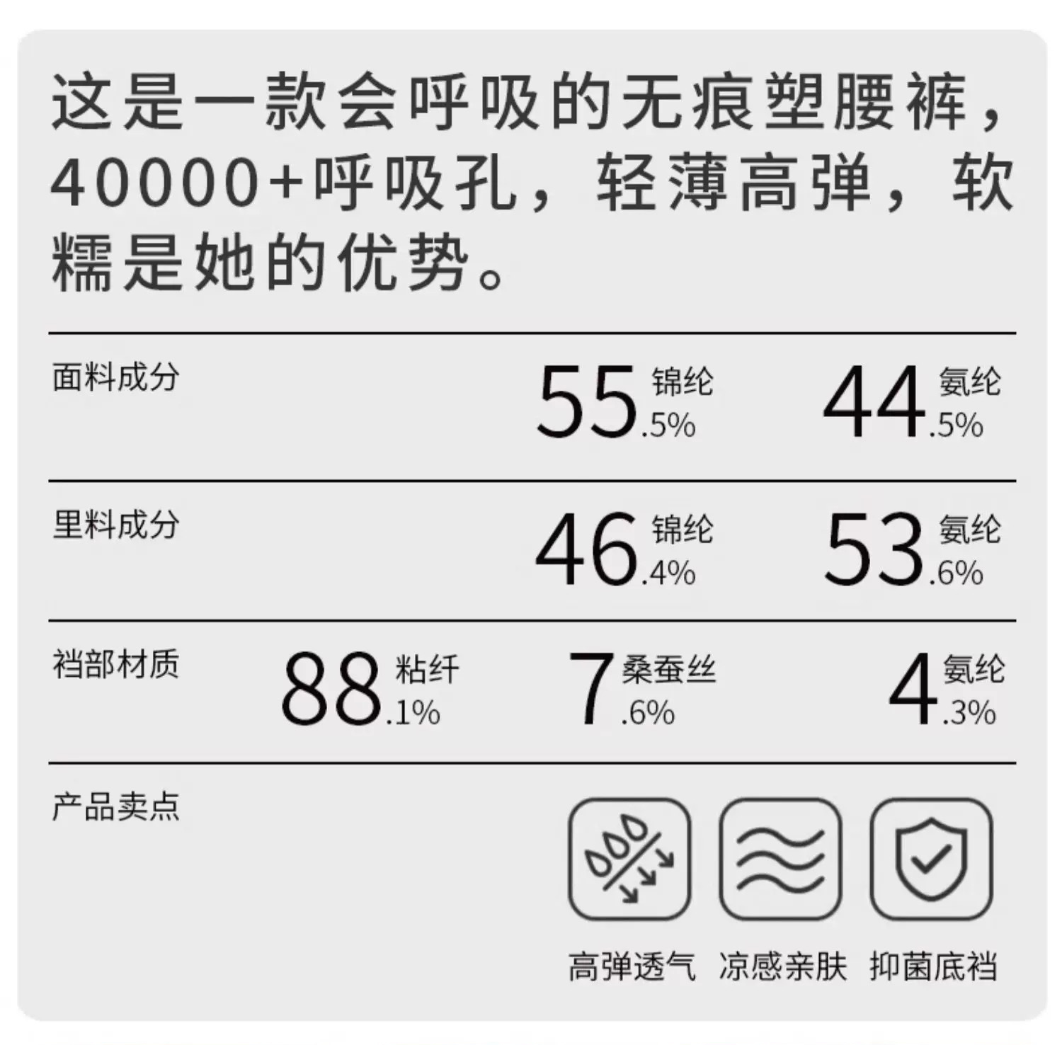 ✔7A抗菌面料,抗水洗150次,无痕高弹
