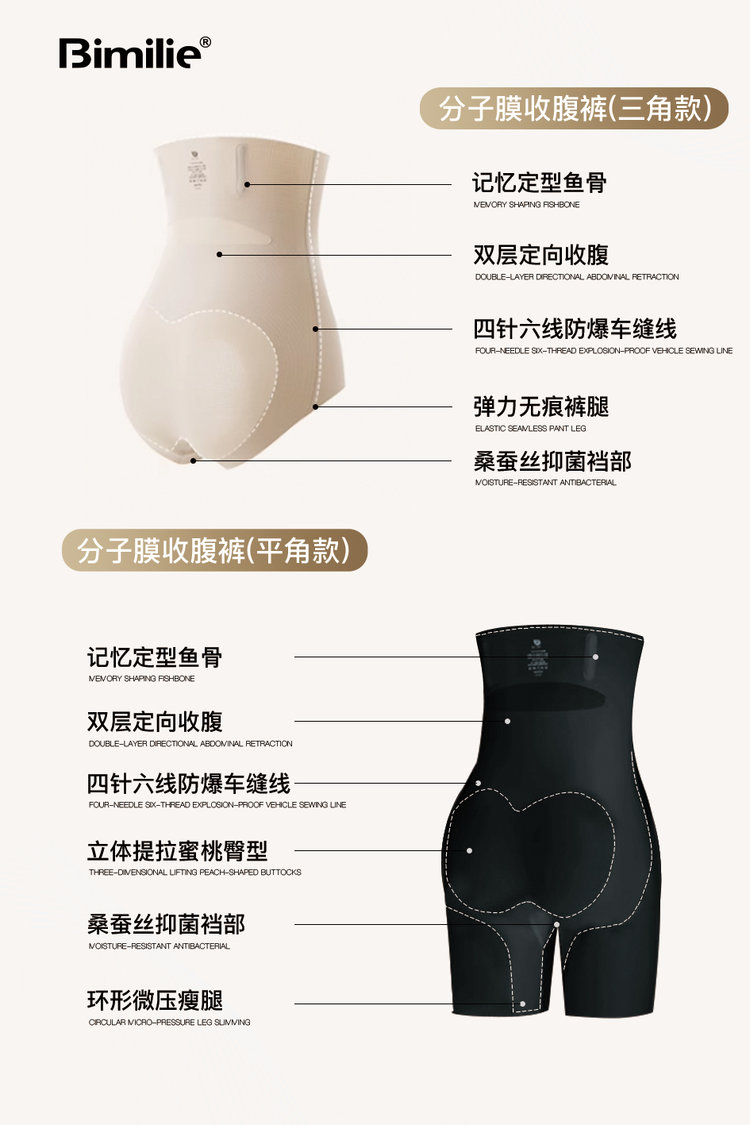 2.26之后发!【蓓米莉Bimilie分子膜收腹裤 平角/三角】塑形呼吸王!无痕高弹❗❗定制科技呼吸网孔,透气效果更强!✅桑蚕丝底裆+7A抗菌面料!塑形➕舒适 ✅四根记忆软骨支撑,随时稳固调节收腹!