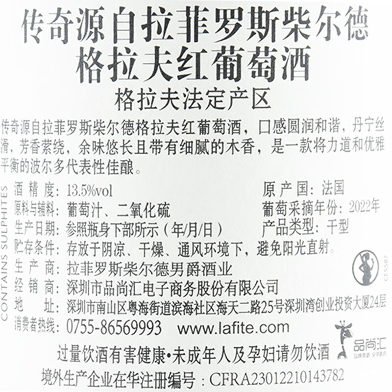 传奇源自拉菲罗斯柴尔德格拉夫红葡萄酒13.5%vol 750ml